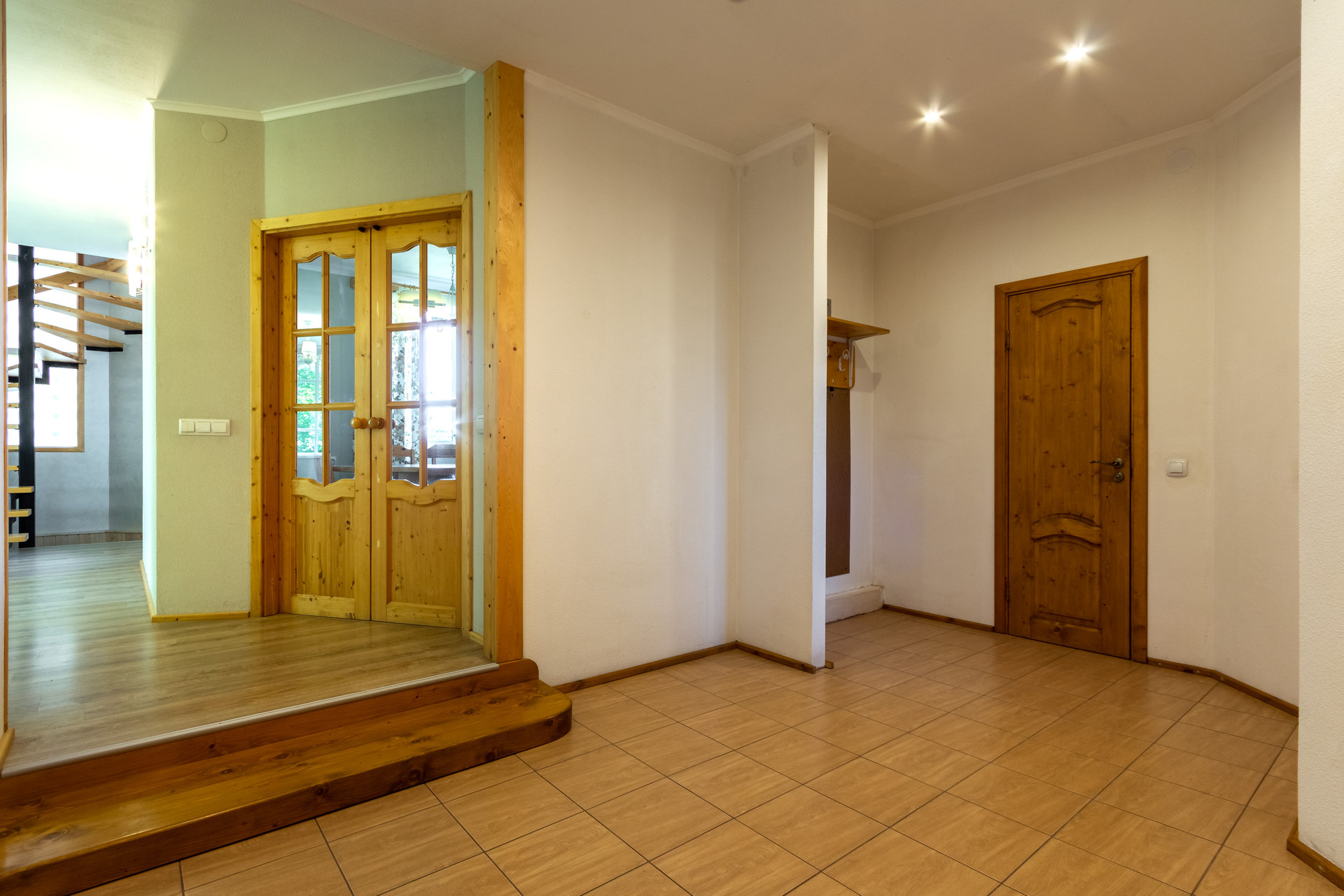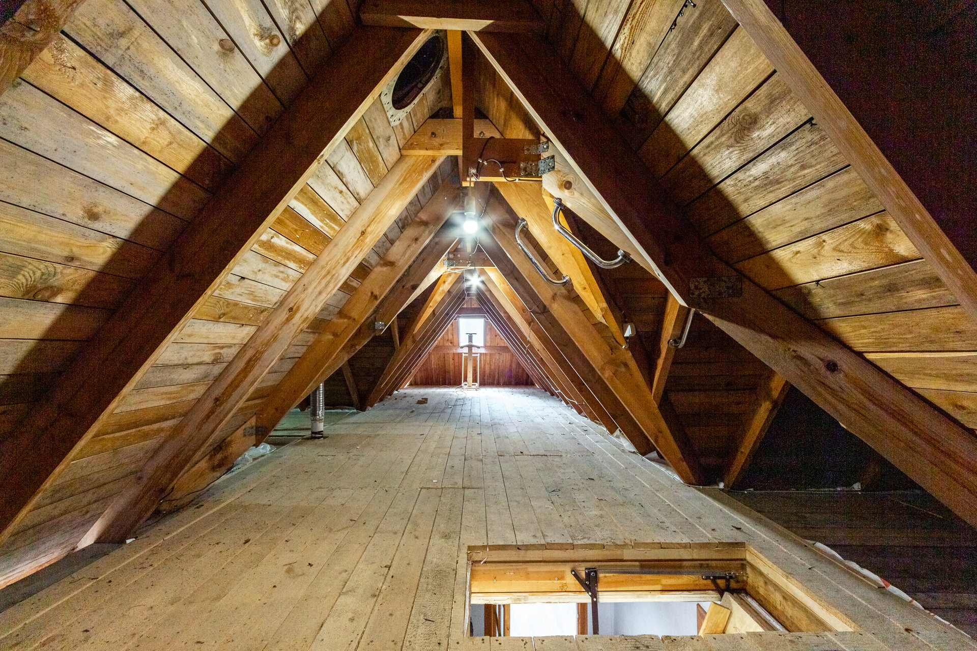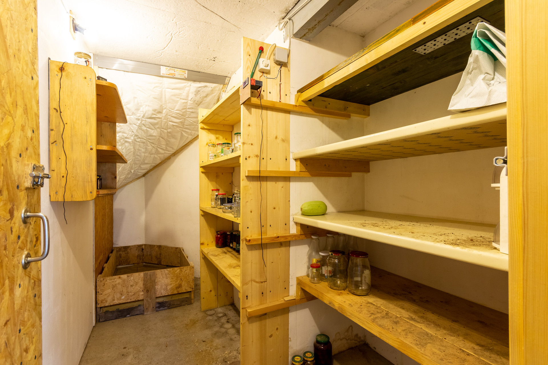 В цокольном этаже находится большая мастерская, котельная, кладовая под лестницей и гараж с подъёмными секционными воротами.
