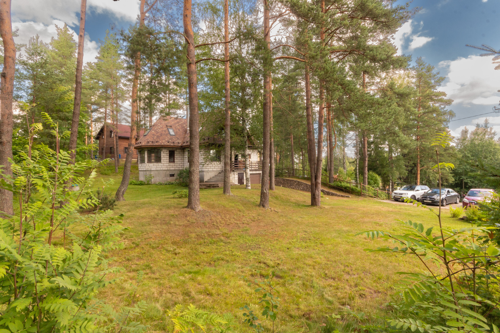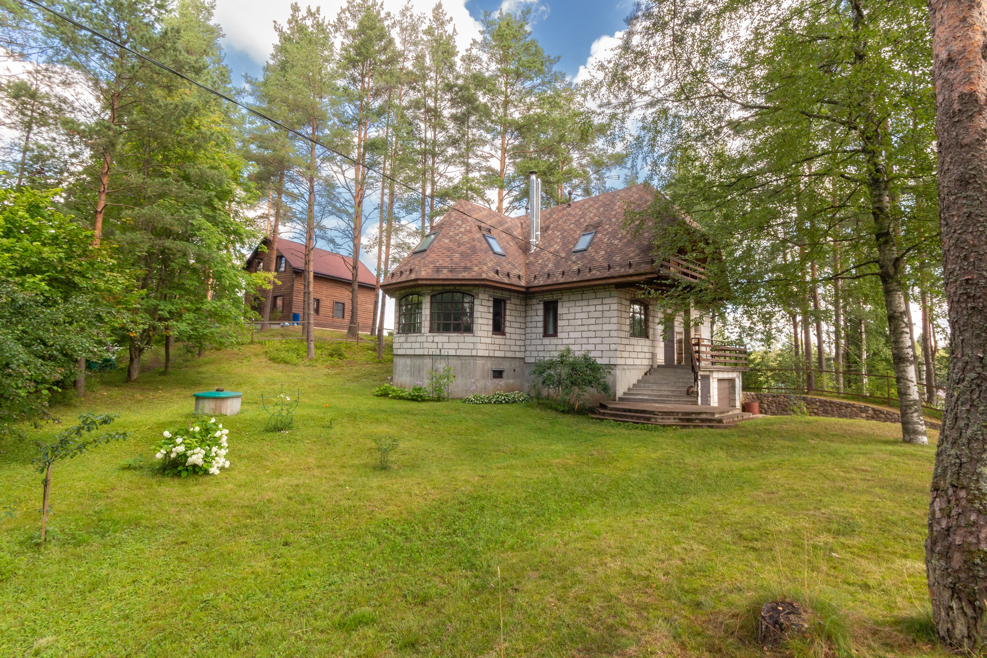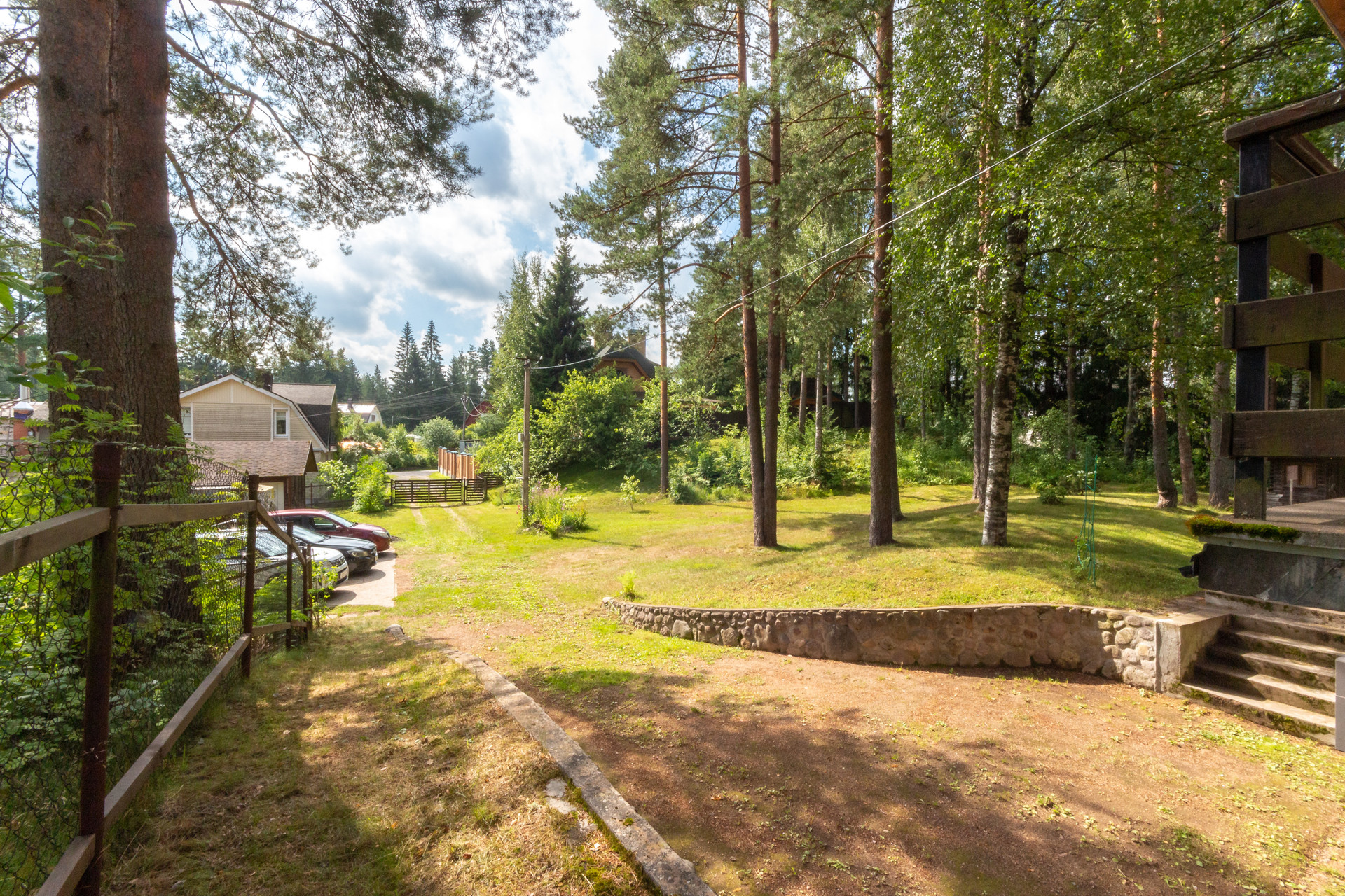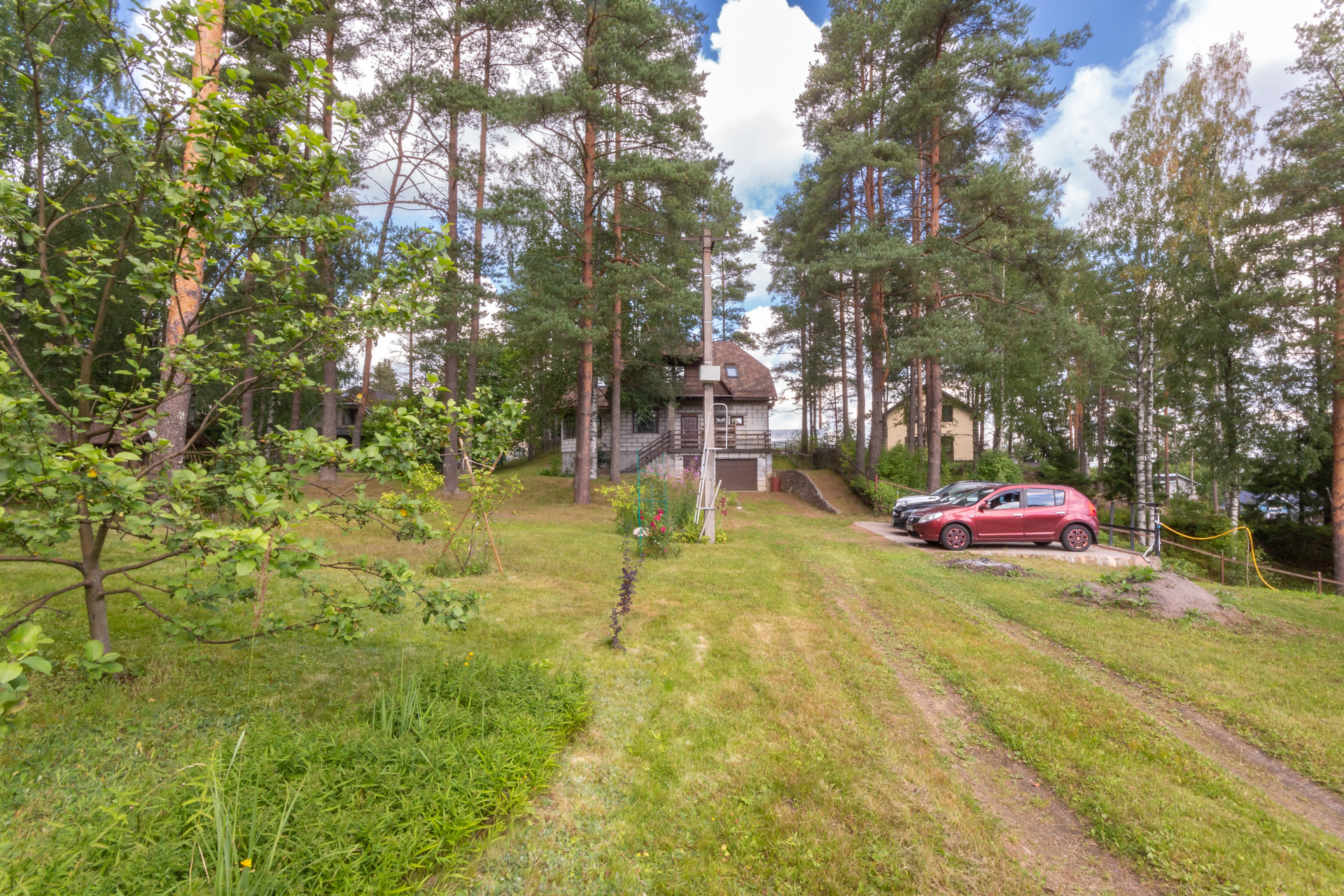 Участок 27 соток, состоит из трех участков, земли населенных пунктов, для ведения садоводства. Участок имеет естественный перепад высоты, сухой и с красивым лесным ландшафтом. Отдельная зона с террасным огородом и теплицей. Есть яблоневый сад, черничник, груши, вишня, жимолость, японская айва, крыжовник, черная смородина и голубика. И красивейшая зона леса с соснами на территории участка.