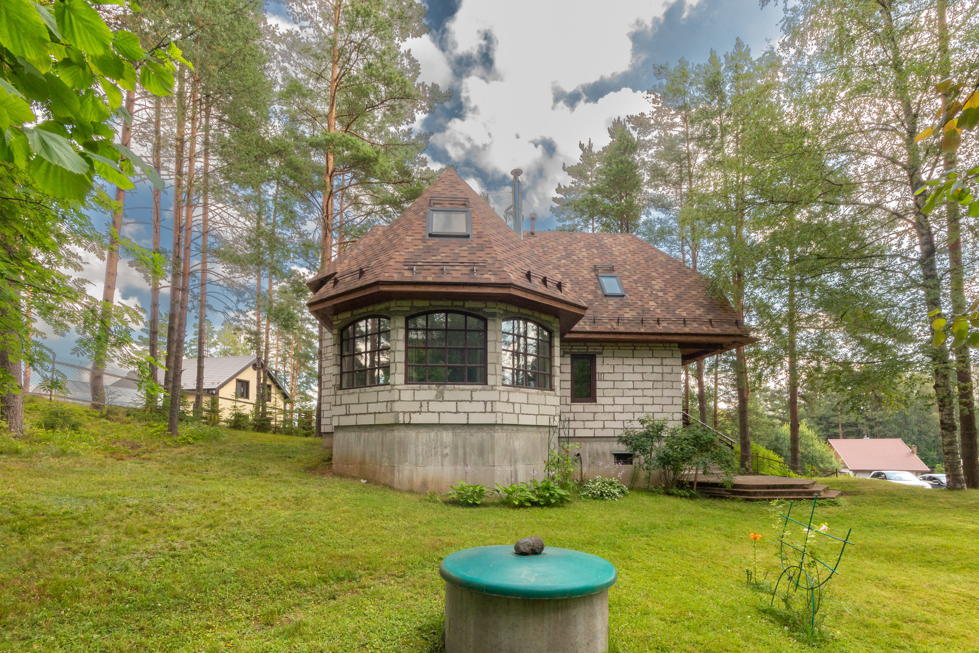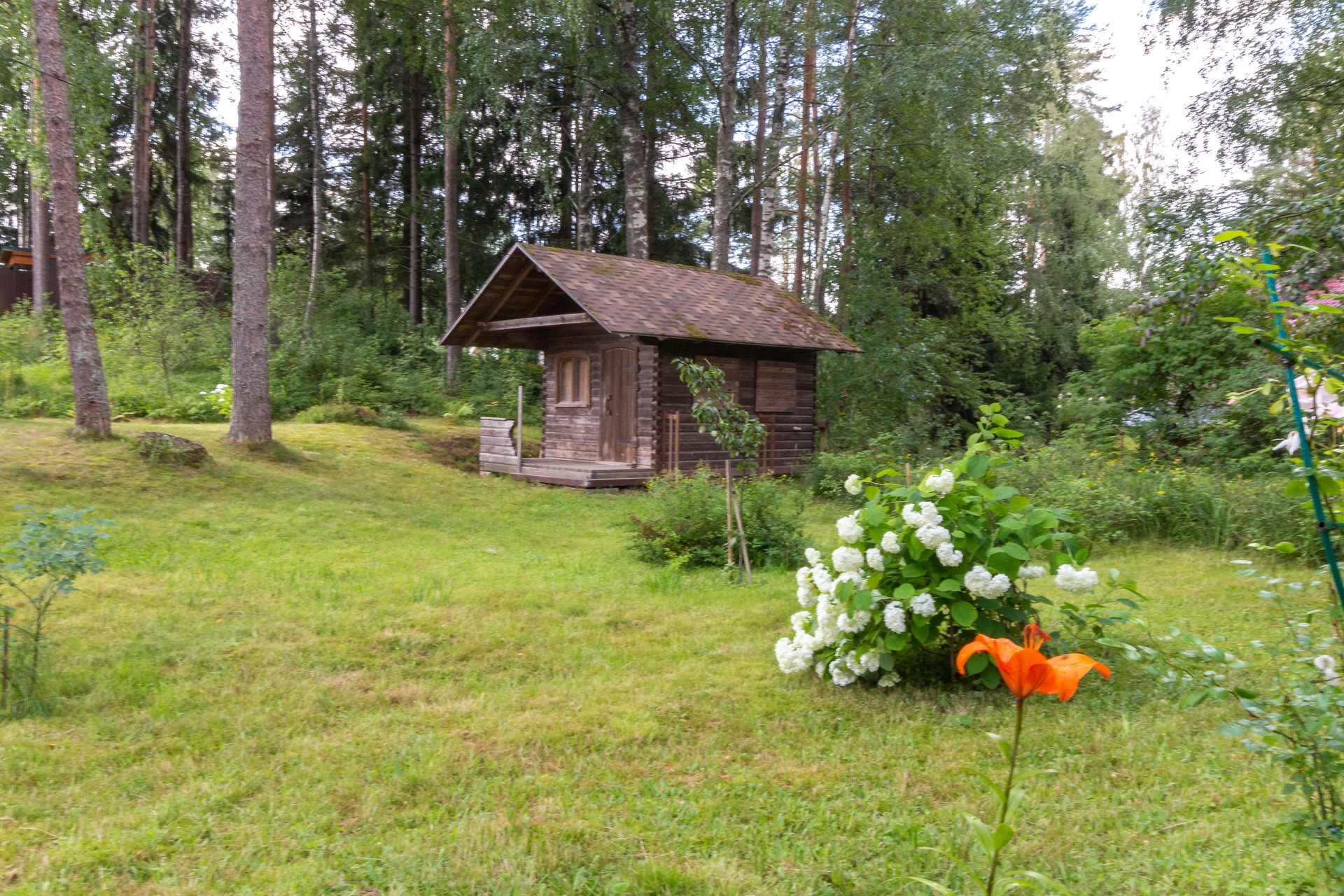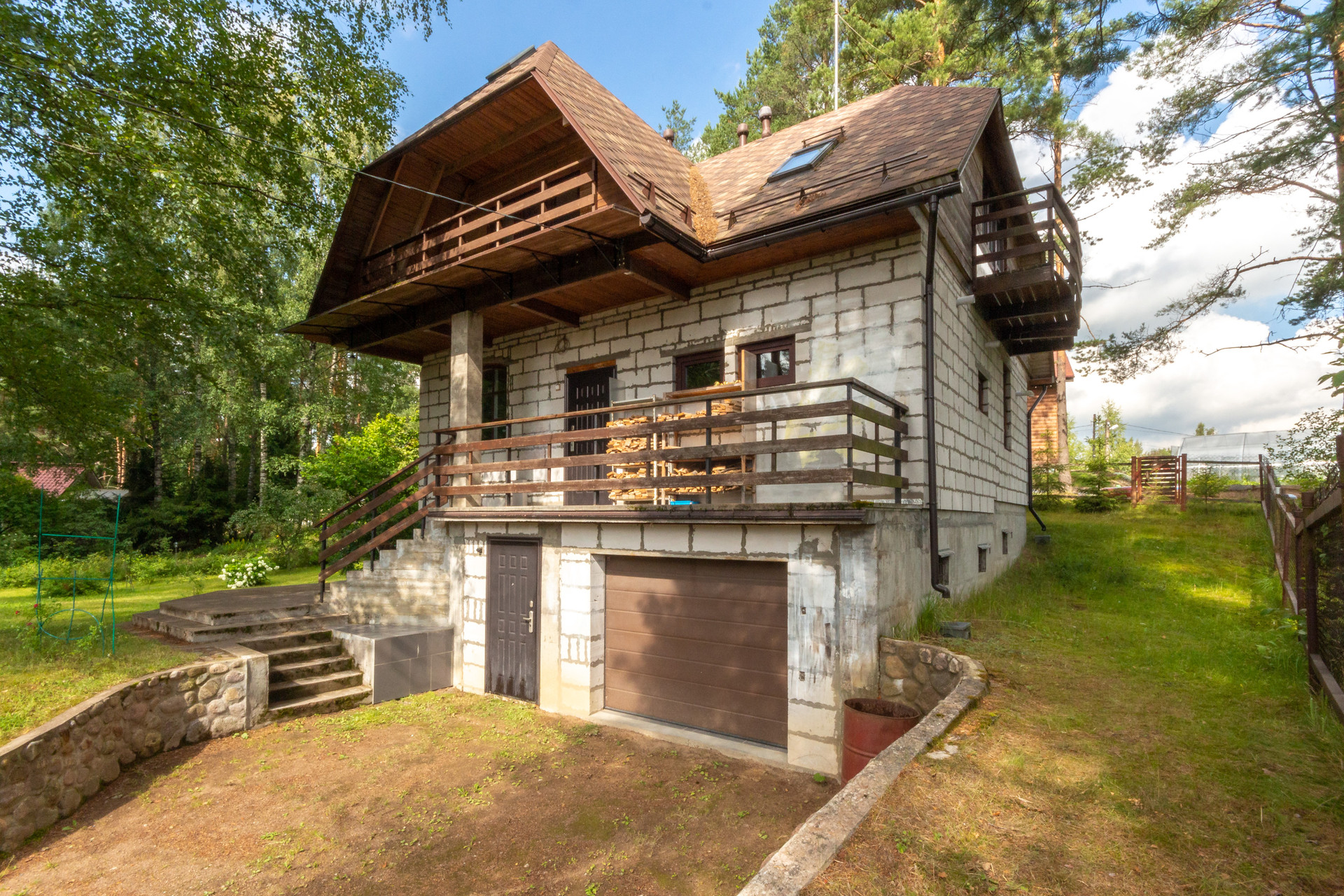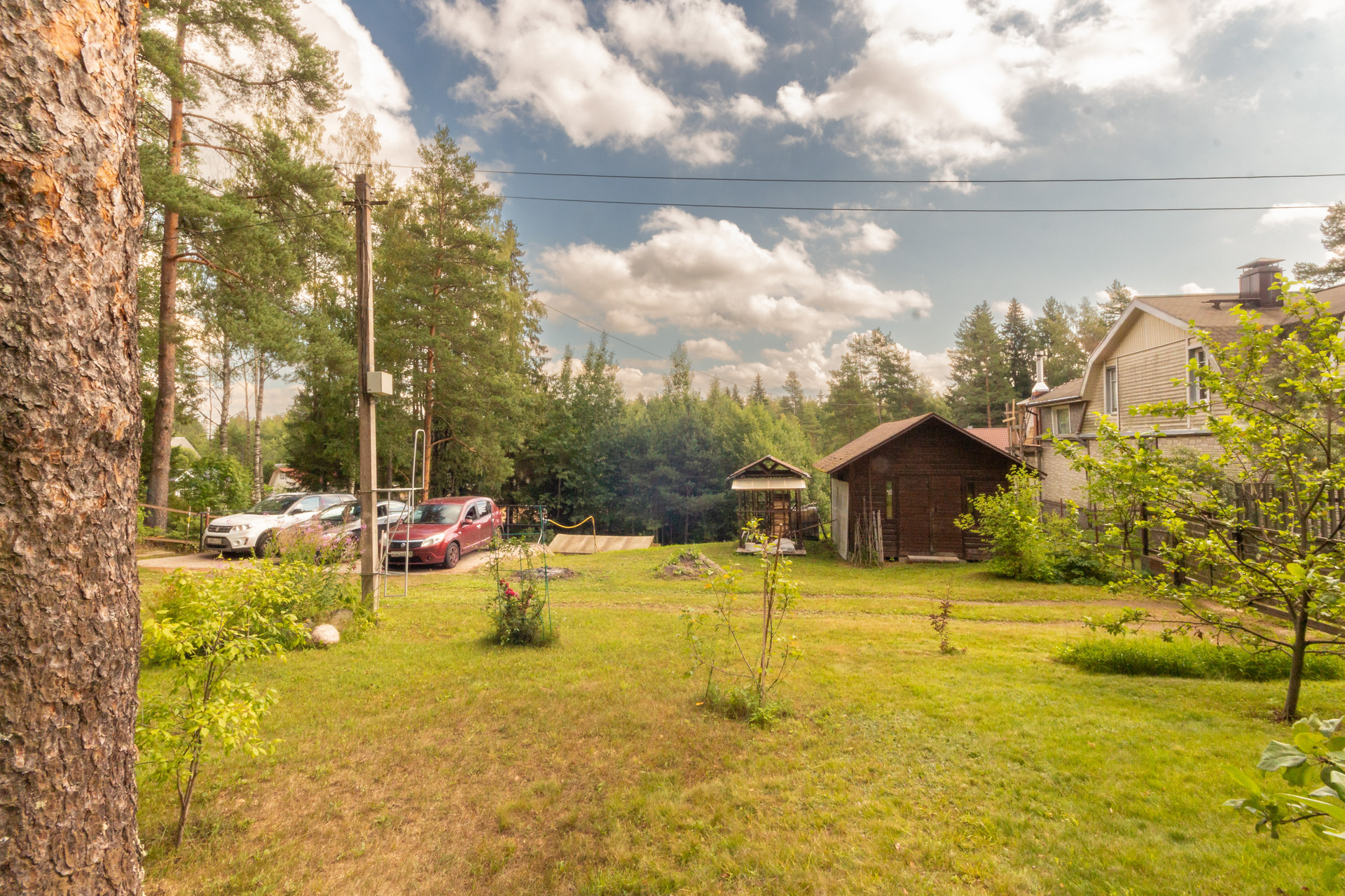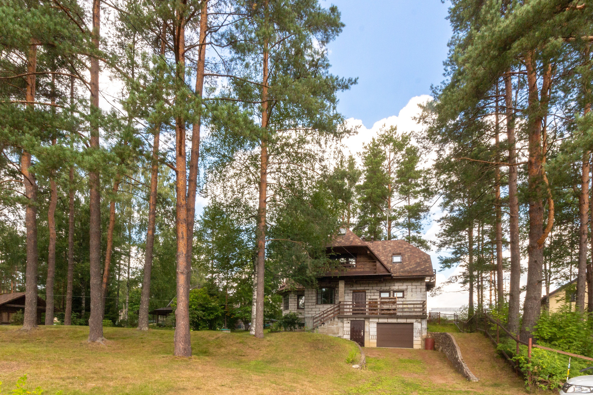 Участок 27 соток, состоит из трех участков, земли населенных пунктов, для ведения садоводства. Участок имеет естественный перепад высоты, сухой и с красивым лесным ландшафтом. Отдельная зона с террасным огородом и теплицей. Есть яблоневый сад, черничник, груши, вишня, жимолость, японская айва, крыжовник, черная смородина и голубика. И красивейшая зона леса с соснами на территории участка.