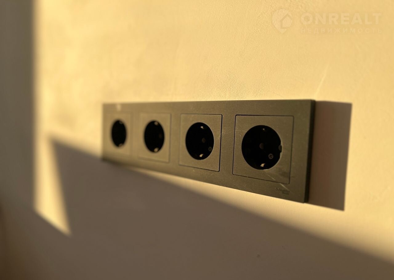 В доме много окон, он очень светлый. Сделана вся чистовая отделка в сдержанном стиле. Черные розетки.