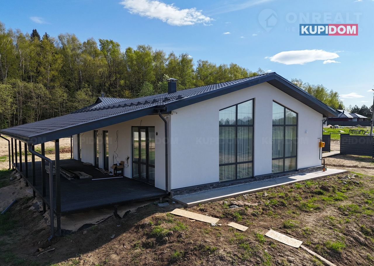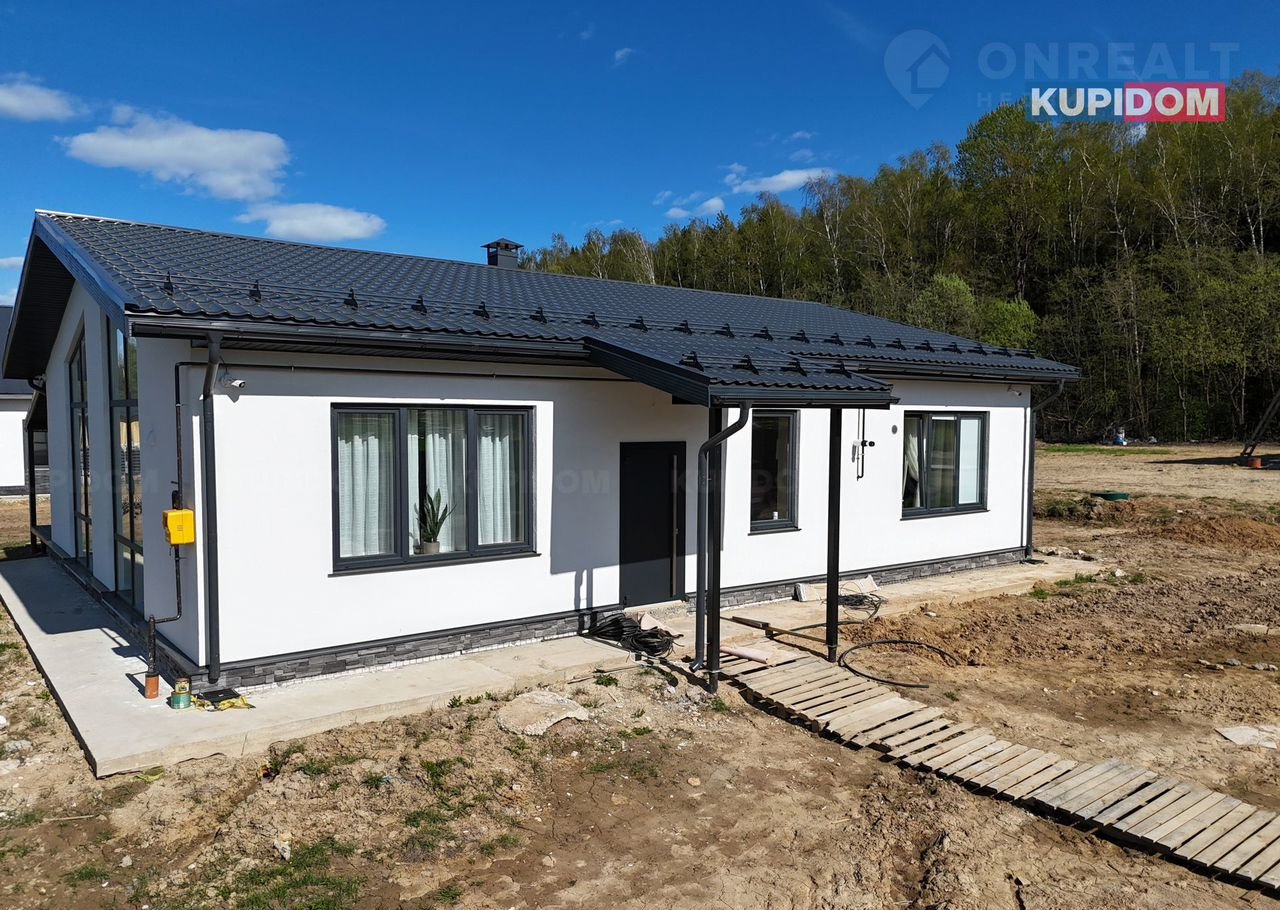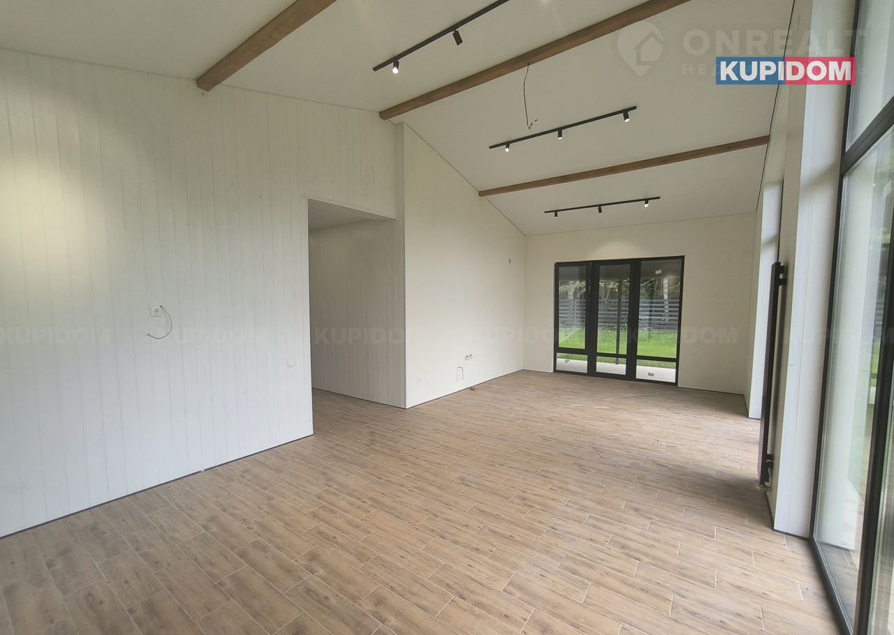 Планировка : крыльцо,прихожая,бойлерная,сан.узел,просторная кухня-гостинная с высоким потолком;панорамным остеклением и выходом на террасу,3 изолированные спальные комнаты 2 из которых мастер спальни(собственный сан.узел).Итого в доме 3 комнаты 3 сан.узла.