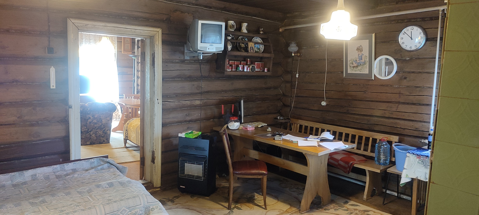 Предлагаем Вам бревенчатый дом пл. 52,2 кв.м. с пристроенным кирпичным гаражом. В доме 2 печи + котел на твердом топливе, разведено водяное отопление по всему дому. Крыша покрыта оцинкованным железом. К крыше можно оборудовать жилые комнаты (лестница на 2-й этаж сделана).