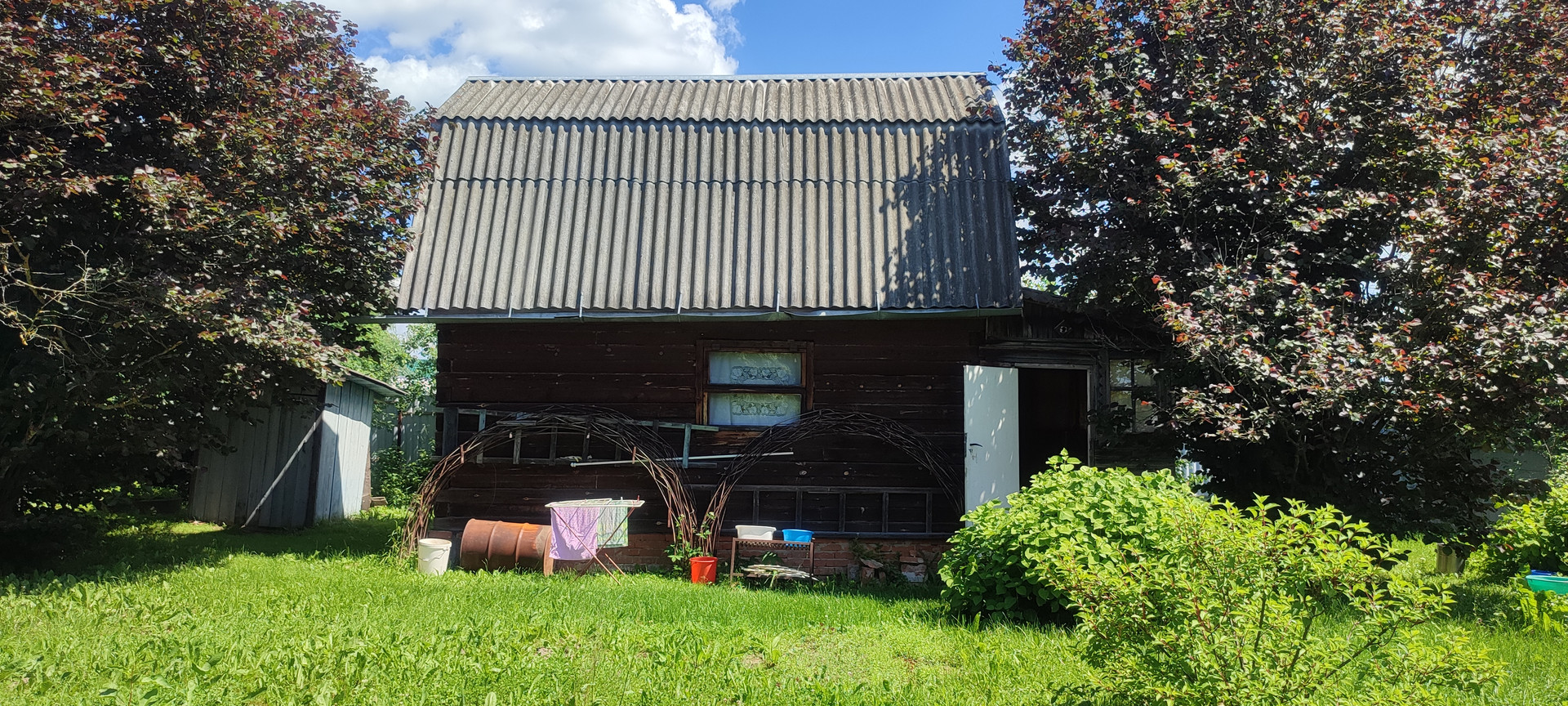 Участок огорожен со всех сторон. На участке 2-х этажная баня 8х4, колодец и туалет.