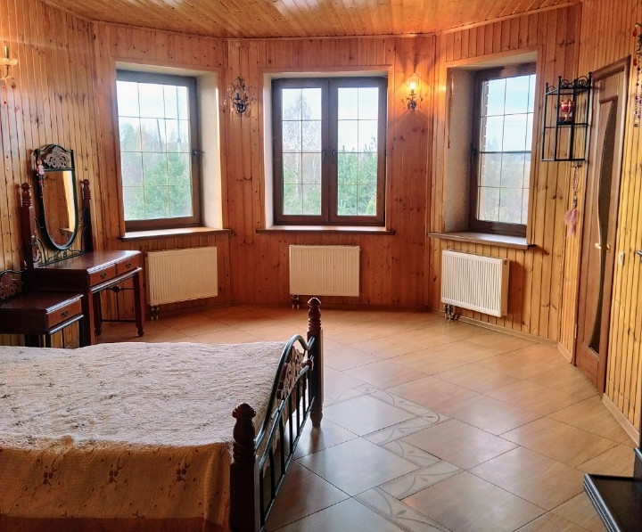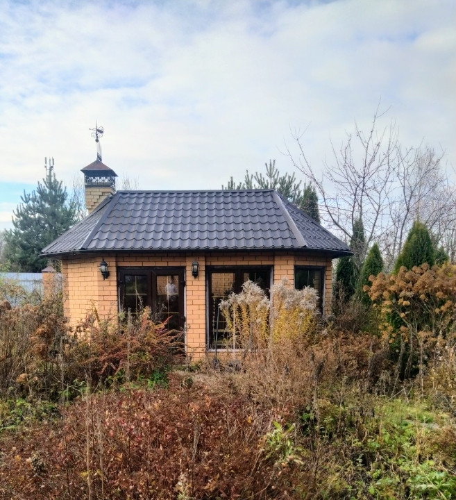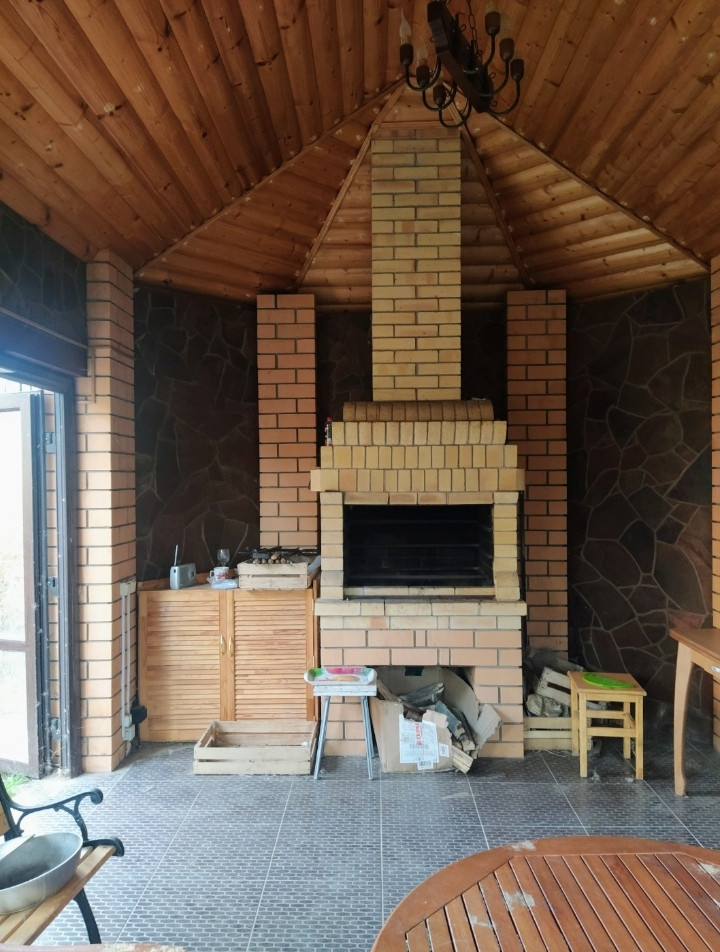 На земельном участке площадью 45 сот. расположены: уютная закрытая беседка с камином, огромный гараж, колодец, теплица, сад, декоративный пуд.