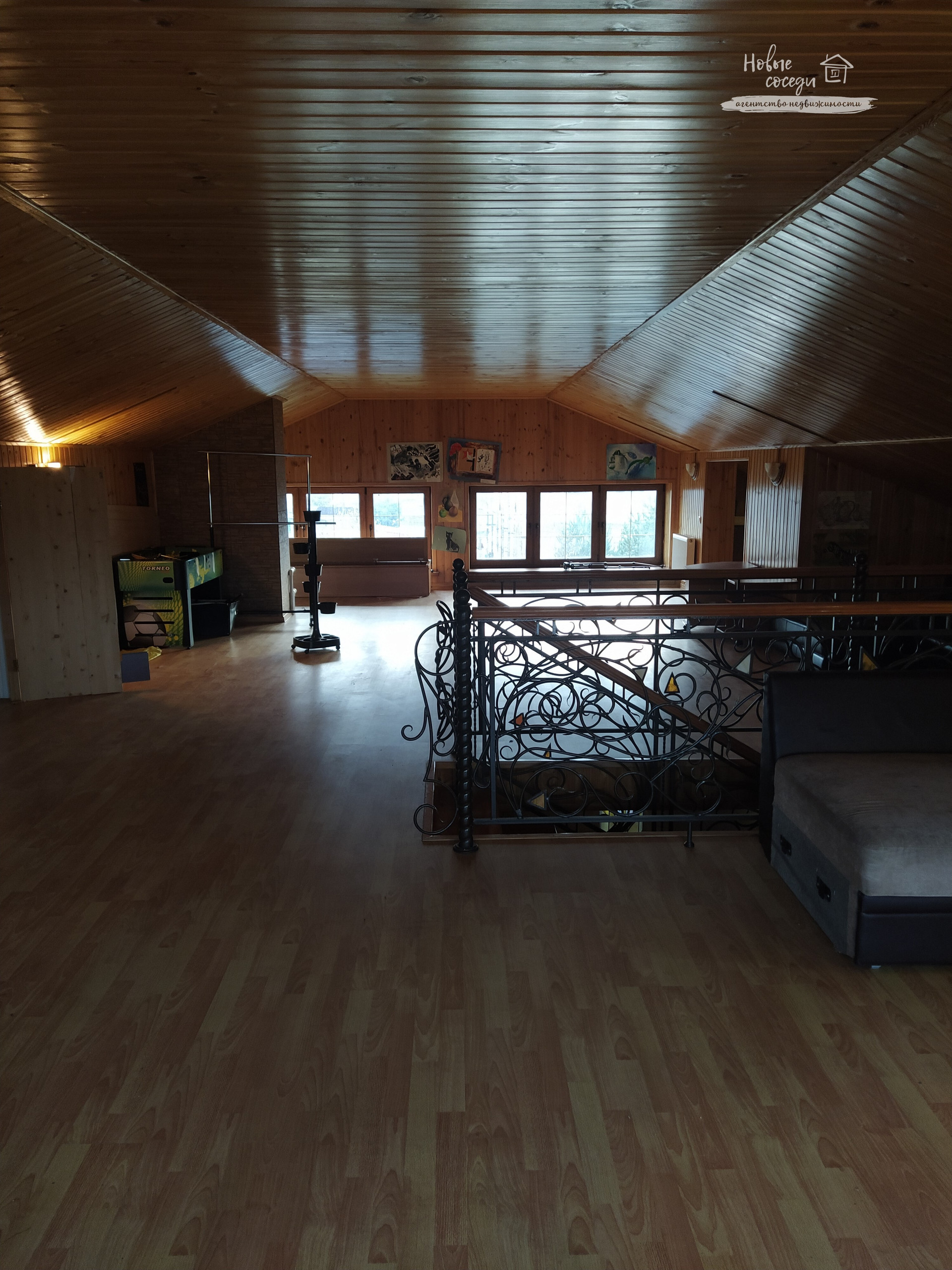 Соединяет все эти этажи изысканная лестница с коваными поручнями.
