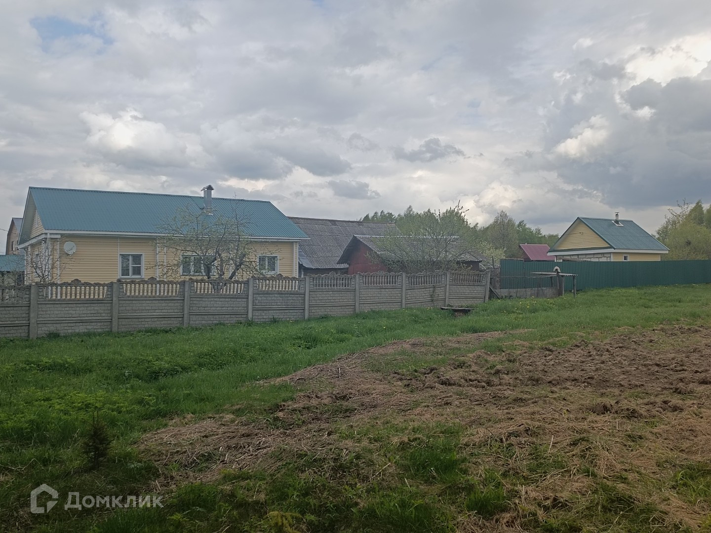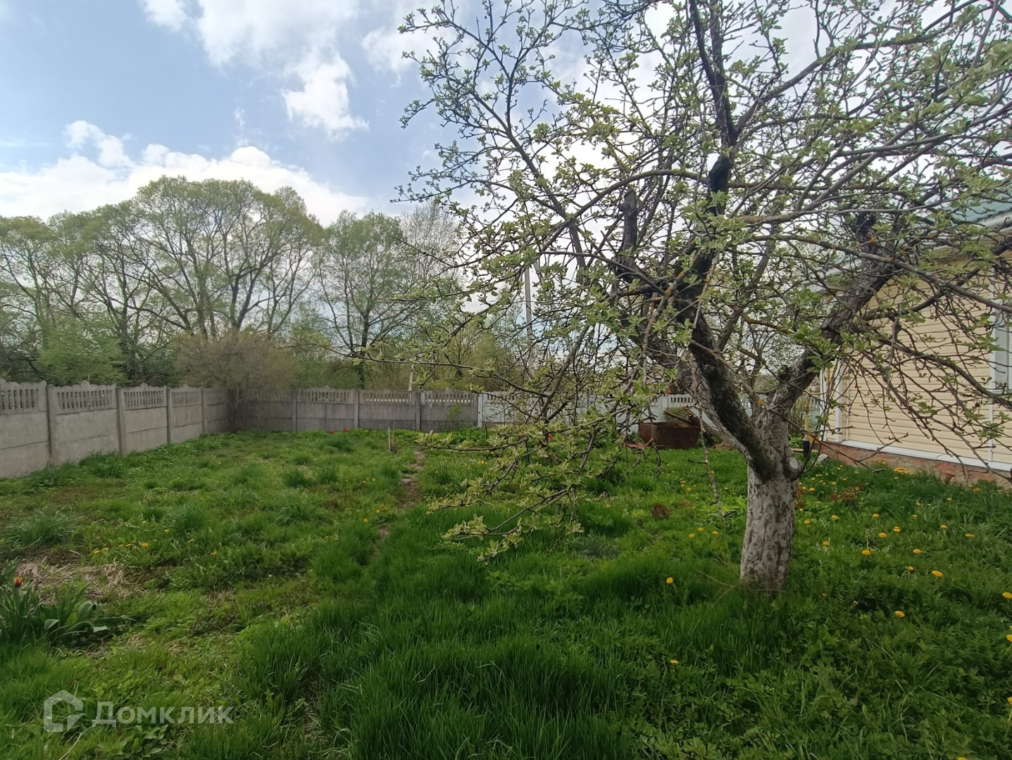 - участок огорожен забором из камня и профлиста