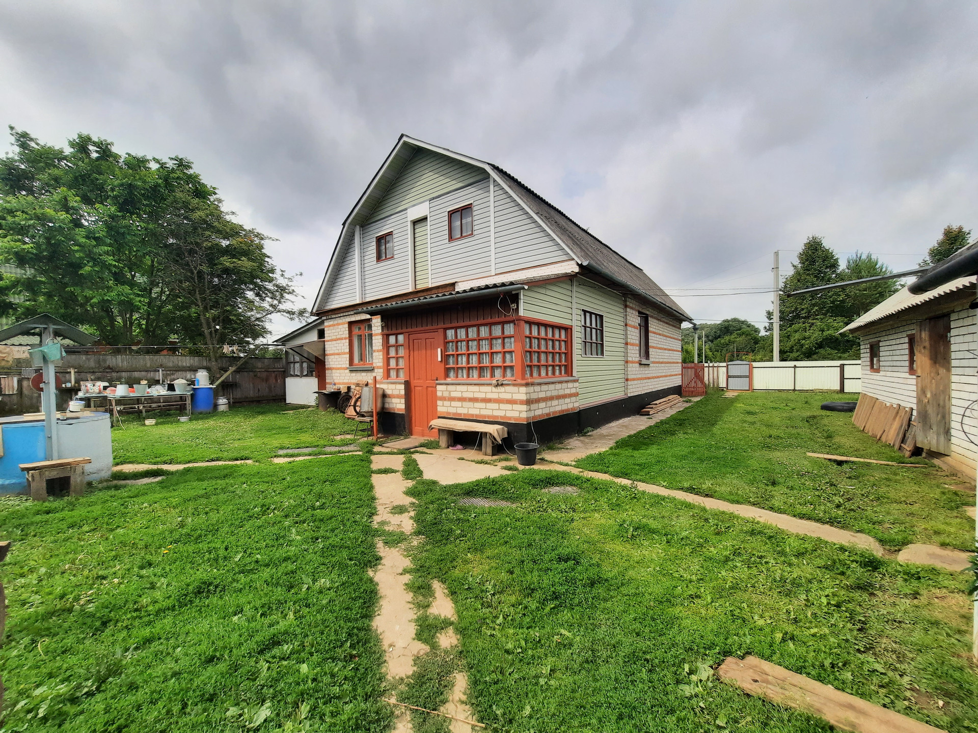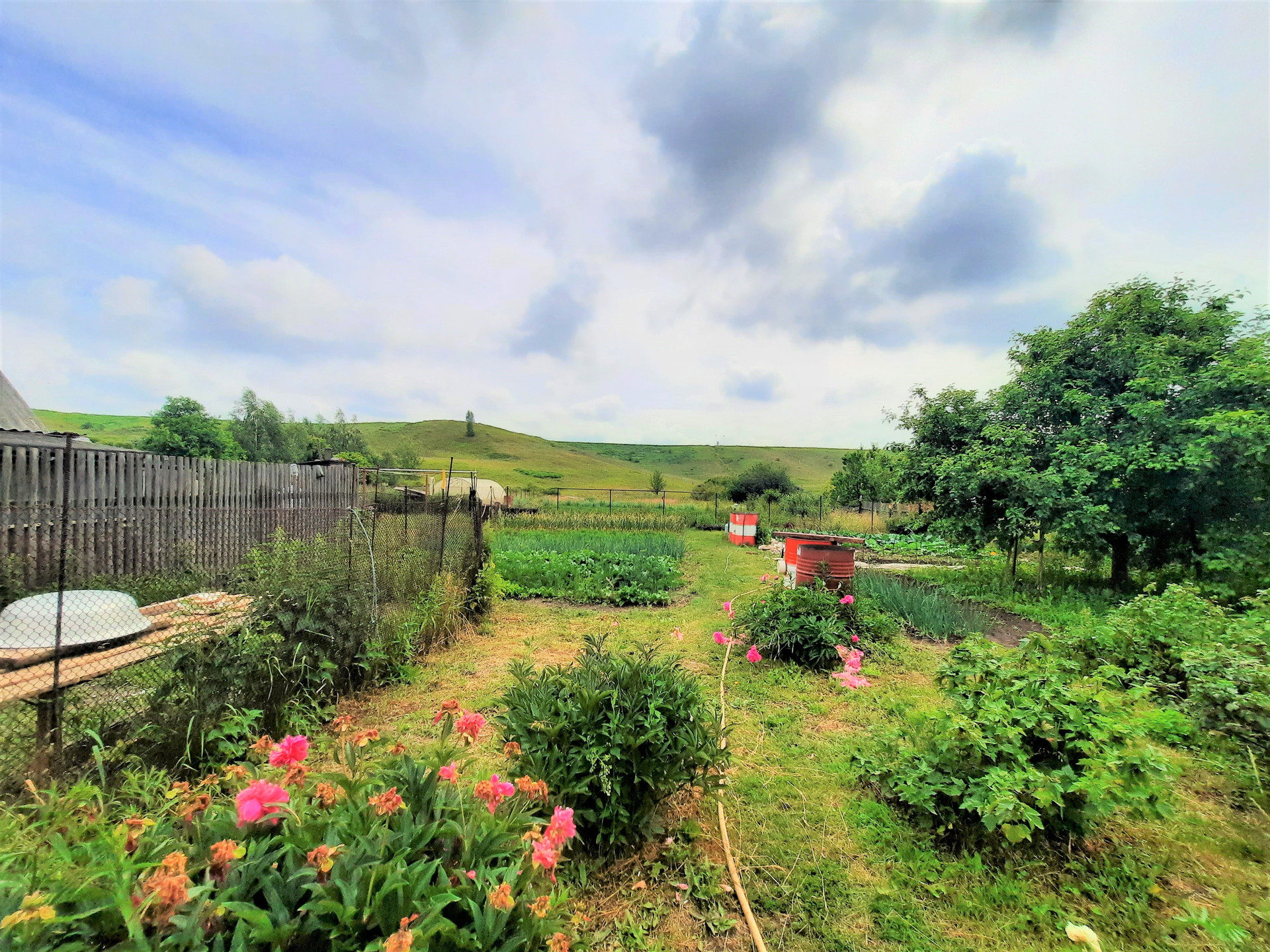 Участок просторный, расположен в хорошей экологической зоне, вдали от загрязняющих промышленных инфраструктур города. За домом и участком открывается живописный вид на холмы и луга. Такое расположение дома и земли сделает ваше проживание не только эстетически приятным, но и позволит использовать выход на луг для выпаса ваших домашних животных, в случае если решите заняться фермерством и разведением скота.