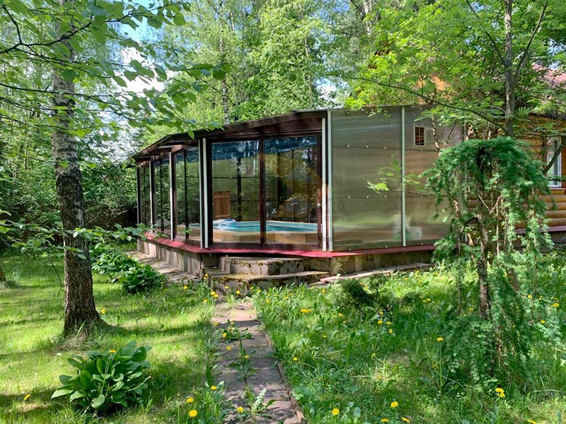 На территории участка: баня с бассейном с панорамными окнами, беседка, гараж, гостевая парковка на 2 м/м.