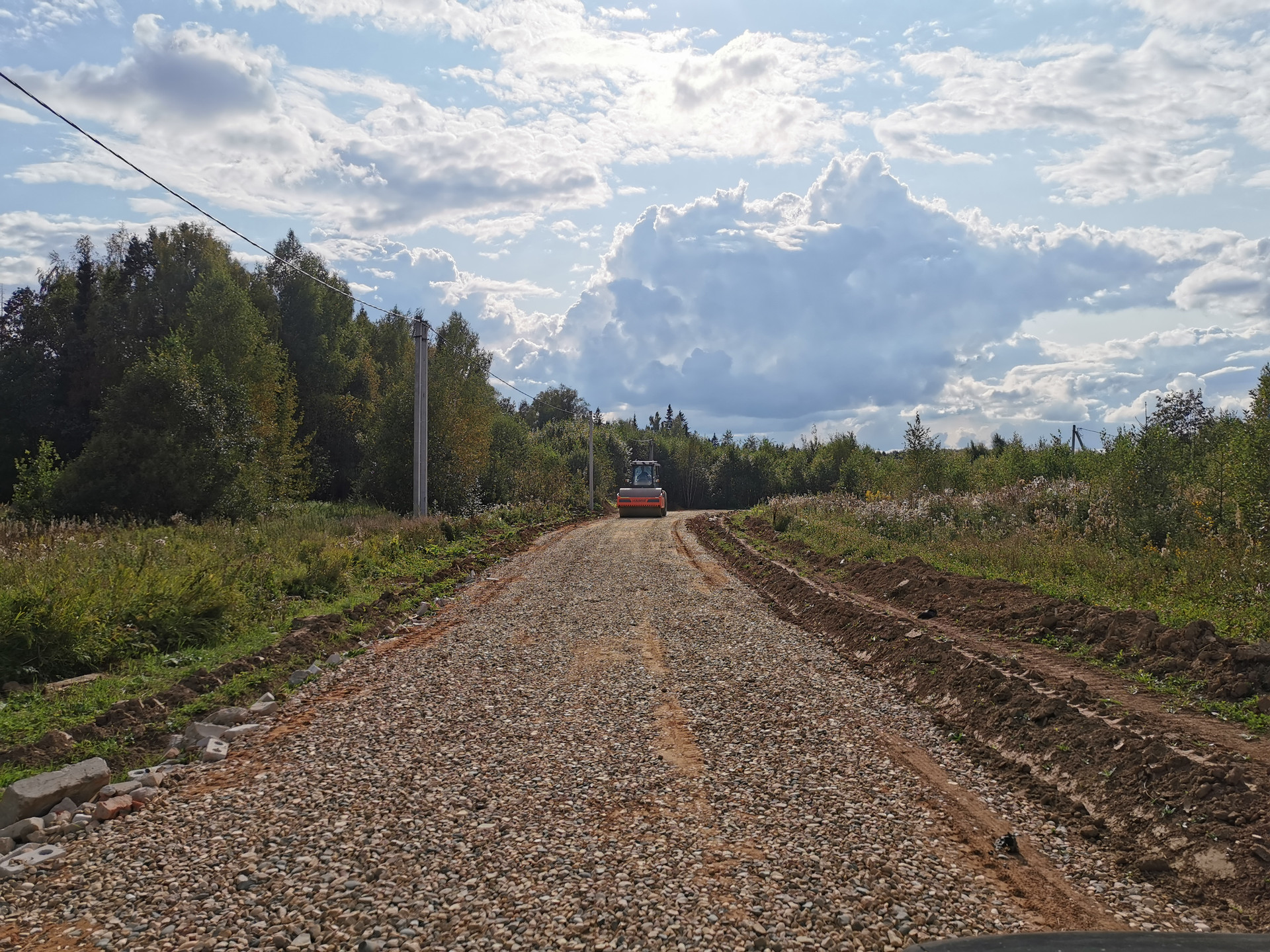 широкие дороги поселка отсыпаны песком и щебнем;