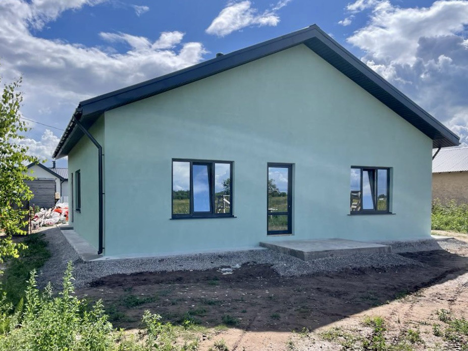 Дом одноэтажный, тёплый, с очень удобной планировкой. Ремонт – «под чистовую отделку». Дом построен из газоблоков, утеплен пенопластом «Кнауф» и оштукатурен фасадной штукатуркой по сетке, крыша - металлочерепица, окна с тройным остеклением.