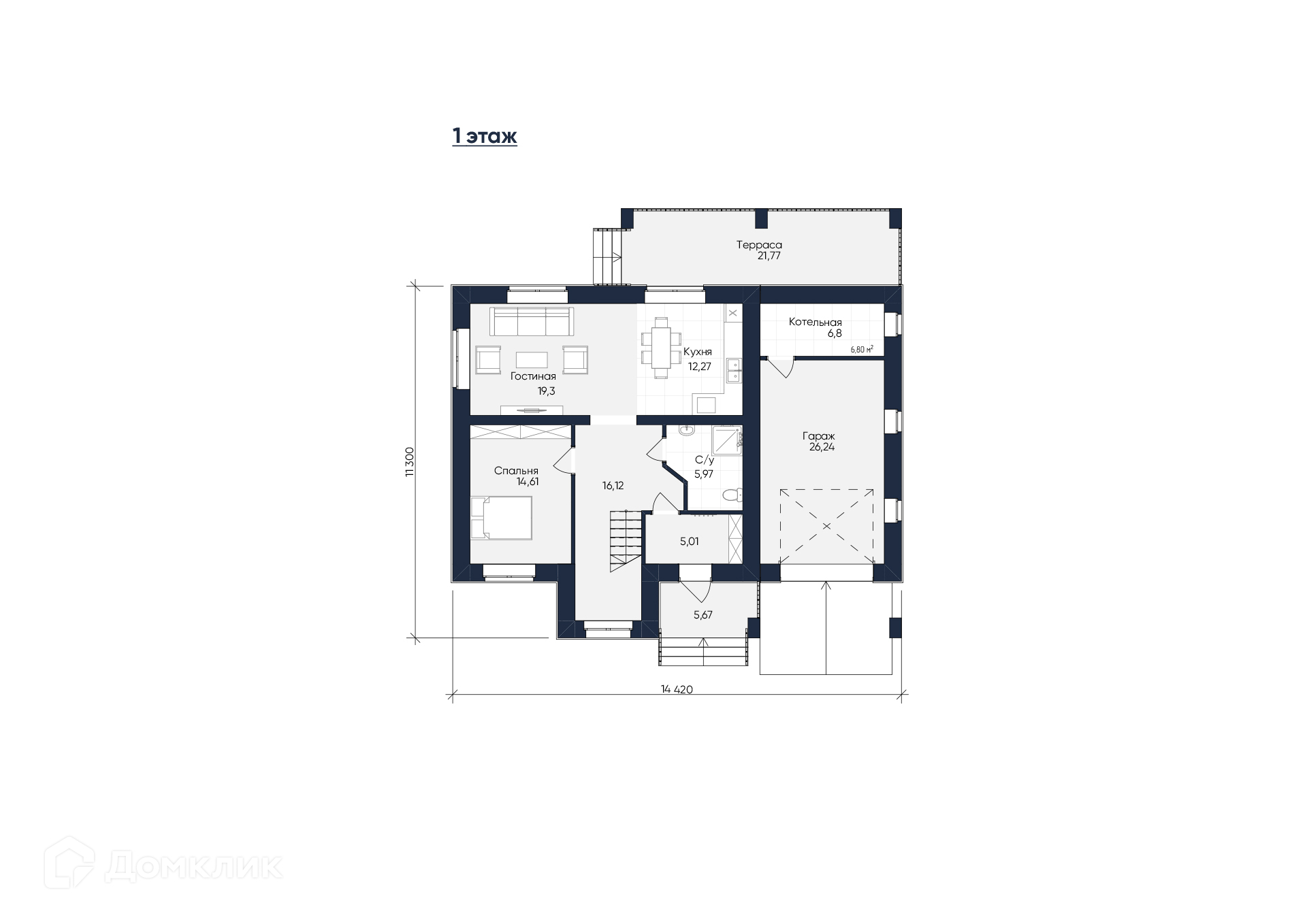 Проект "Империал с гаражом" выполнен в стиле Райта. Дом выглядит стильно, ярко, загадочно. Удивительный и привлекательный не только внешне, но и изнутри. В доме пять спальных комнат, два санузла, гардеробная, кухня, гостиная-столовая, с выходом на террасу. Дополнительное преимущество дома — теплый гараж.