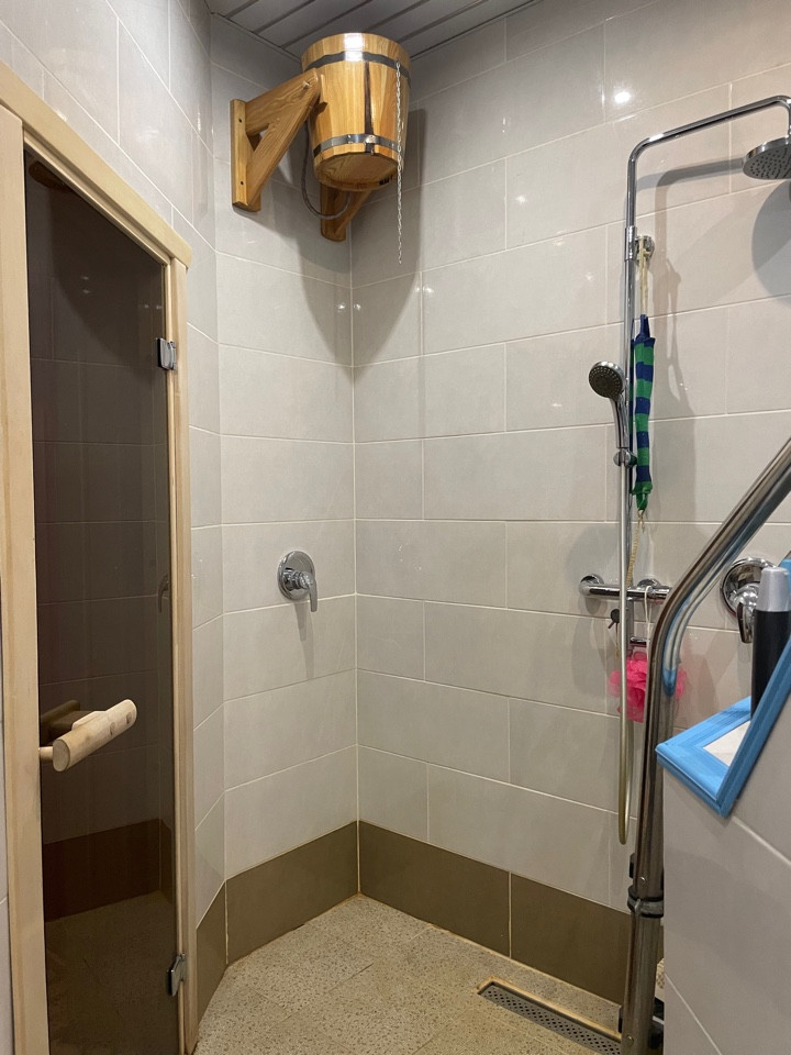 1- этаж: входная группа, большая прихожая, кухня-столовая совмещенная с гостиной 62кв.м и камином, спальня 18кв.м, большая туалетная комната 15 кв.м. с постирочной, новая сауна с купелью, котельная с очистной системой.