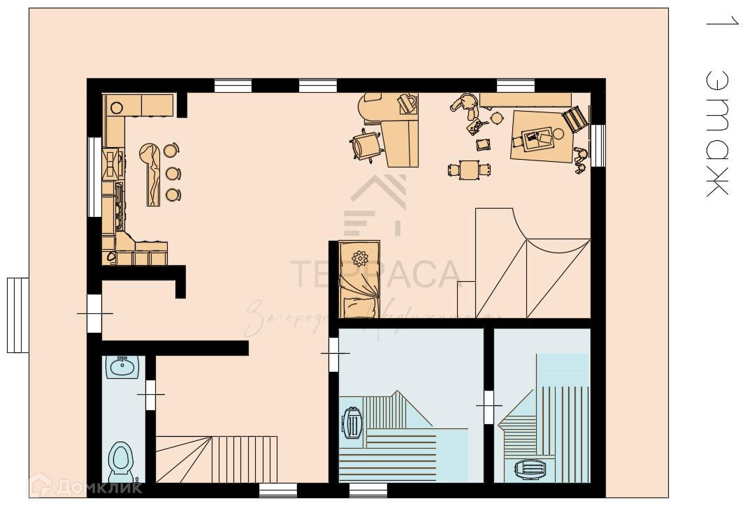 1 этаж – прихожая, кухня, столовая-гостиная, изолированная комната, с/у.