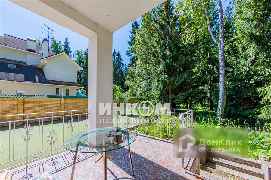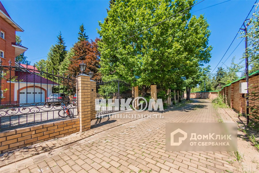 Дом расположился на большом участке 15 соток плюс с лесными деревьями и своей спортивной площадкой. Перед домом большое парковочное пространство. Забор с фасада - ковка с автоматическими воротами на въездной группе, по периметру - сплошной из кирпича.