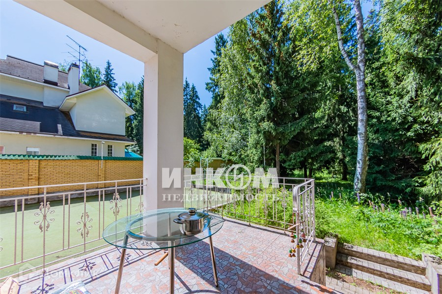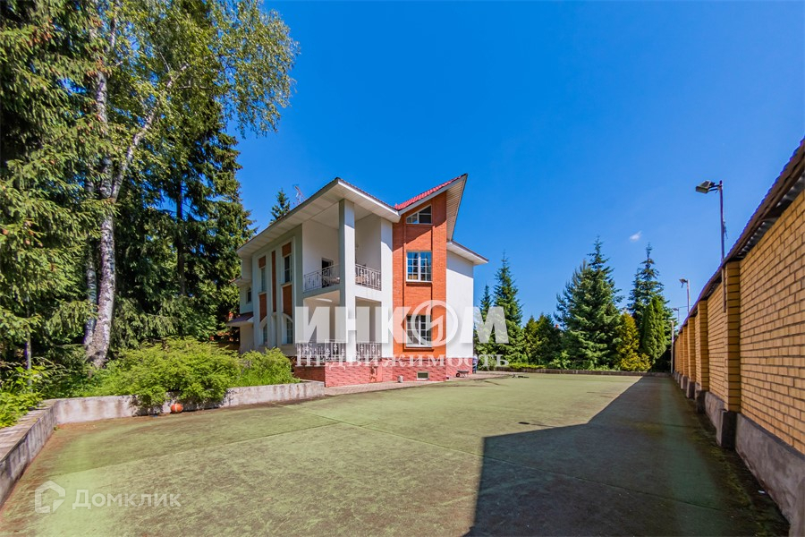 Дом расположился на большом участке 15 соток плюс с лесными деревьями и своей спортивной площадкой. Перед домом большое парковочное пространство. Забор с фасада - ковка с автоматическими воротами на въездной группе, по периметру - сплошной из кирпича.
