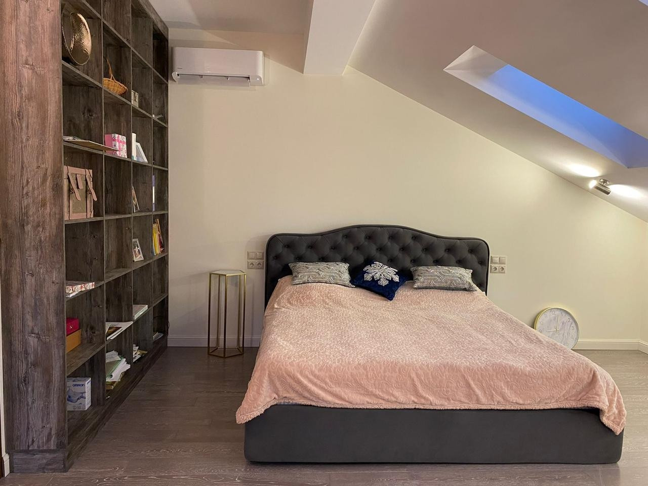 Весь первый этаж с теплым полом, в каждой комнате установлены кондиционеры, на кухне встроенная немецкая бытовая техника, холодильник Gorenje side by side, сантехника Villeroy&Bosh.