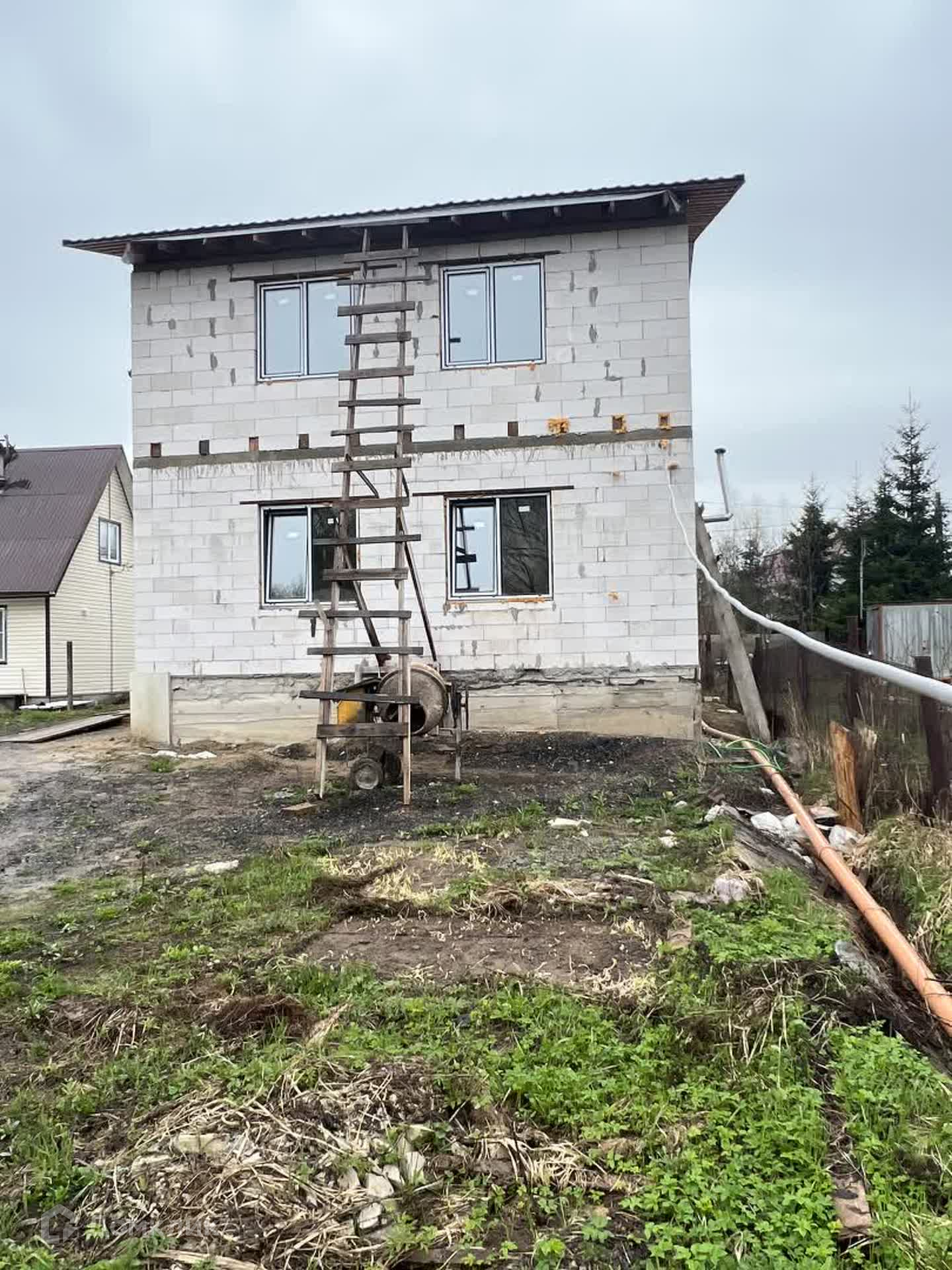 Год постройки 2023. Строили для себя, с душой, и большим опытом в строительстве. Но так сложились обстоятельства и возможности продолжать дальше строить не стало. Соблюдались все технологии в строительстве и использовались качественные материалы. Дом из пеноблока (обнинский пеноблок монолит). Качественный и надежный фундамет. Крыша покрыта дорогой металлочерепицей и утеплена. В доме  установлены качественные  пластиковые стеклопакеты. Скважина. Заведен электрический кабель (есть электричество). Газовая магистраль, проходит рядом с участком. Деревня полностью асфальтирована, отличные дороги, имеется детская площадка, теннисный корт и продуктовый магазин. Хорошие и спокойные  соседи. Эклогически-чистое место, с красивой природой.