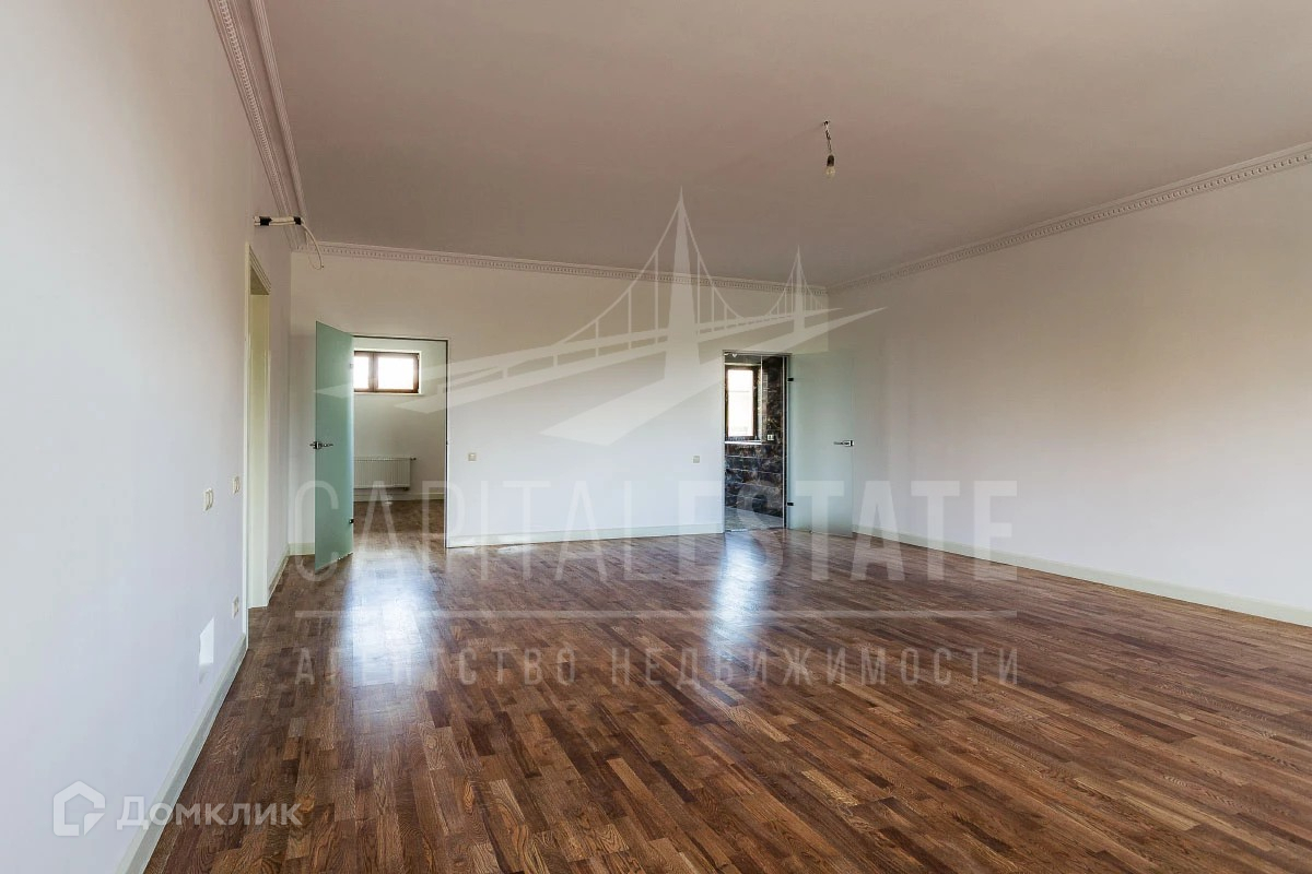 В доме на первом этаже расположены прихожая, гардеробная комната, гостиная, кухня-столовая, спальня с санузлом и гардеробной, гараж на три машиноместа, котельная. На втором этаже пять спален со своими гардеробными и санузлами.