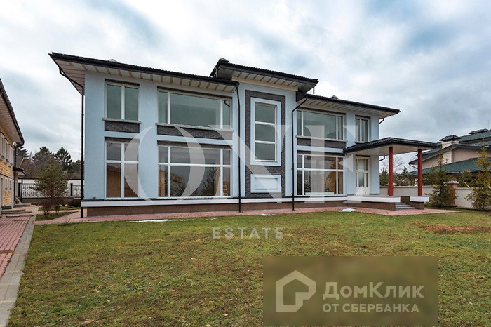 ID 1621: Предлагается к продаже дом площадью 423,8 кв.м. на участке 18,55 соток в КП Азарово Южное на Рублево-Успенском шоссе в 20 км. от МКАД. Планировка: 1 этаж - прихожая с гардеробной комнатой, гостиная с камином, кухня, выход на задний двор, кабинет, санузел, 2 этаж - три мастер-спальни гардеробными и ванными комнатами. На участке построен двухэтажный гостевой дом. На первом этаже гараж на 3 авто и подсобные помещения. На втором этаже 4 спальни, каждая со своим санузлом. На территории участка сделан ландшафтный дизайн с посадками деревьев.