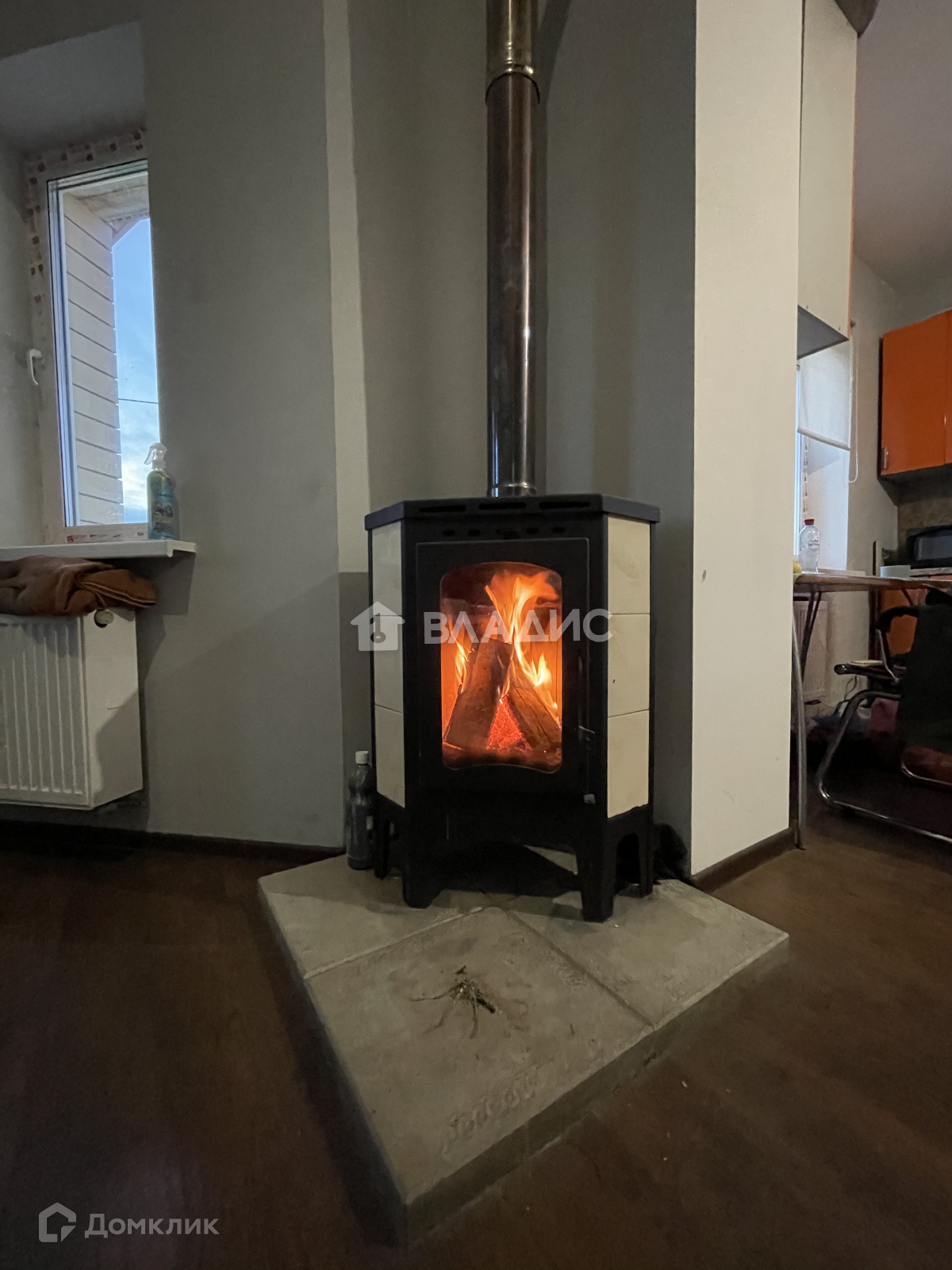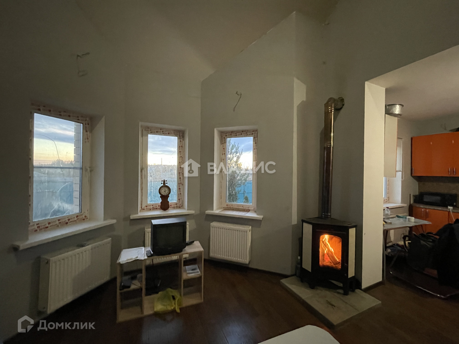 2 этажа, "второй свет", очень высокий потолок в зале, оборудованном современной качественной каминной печью.