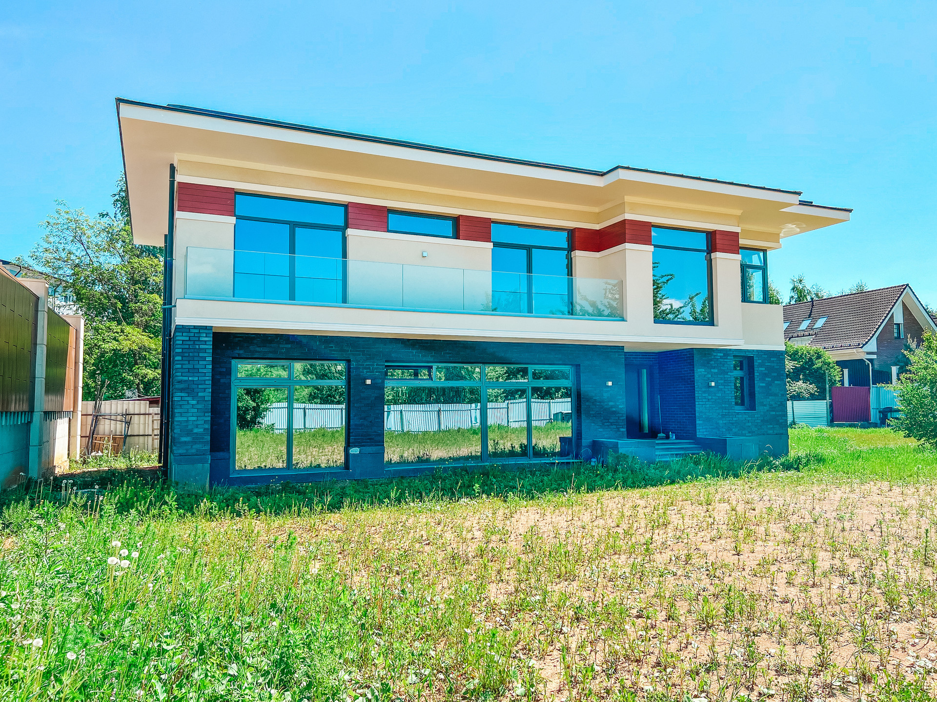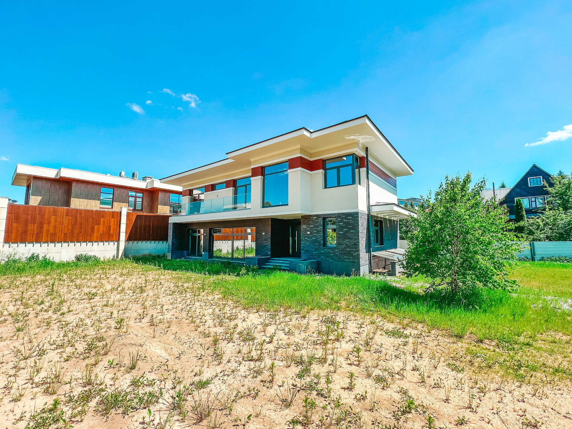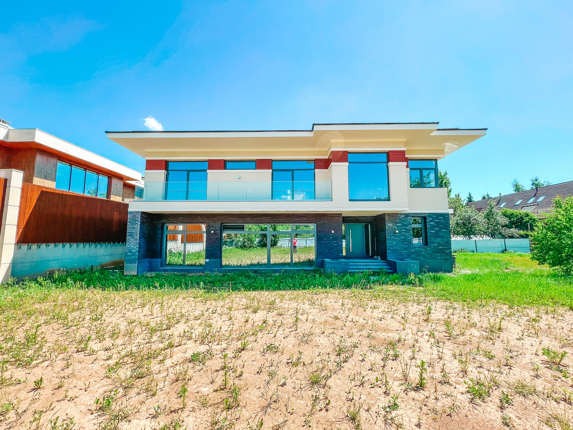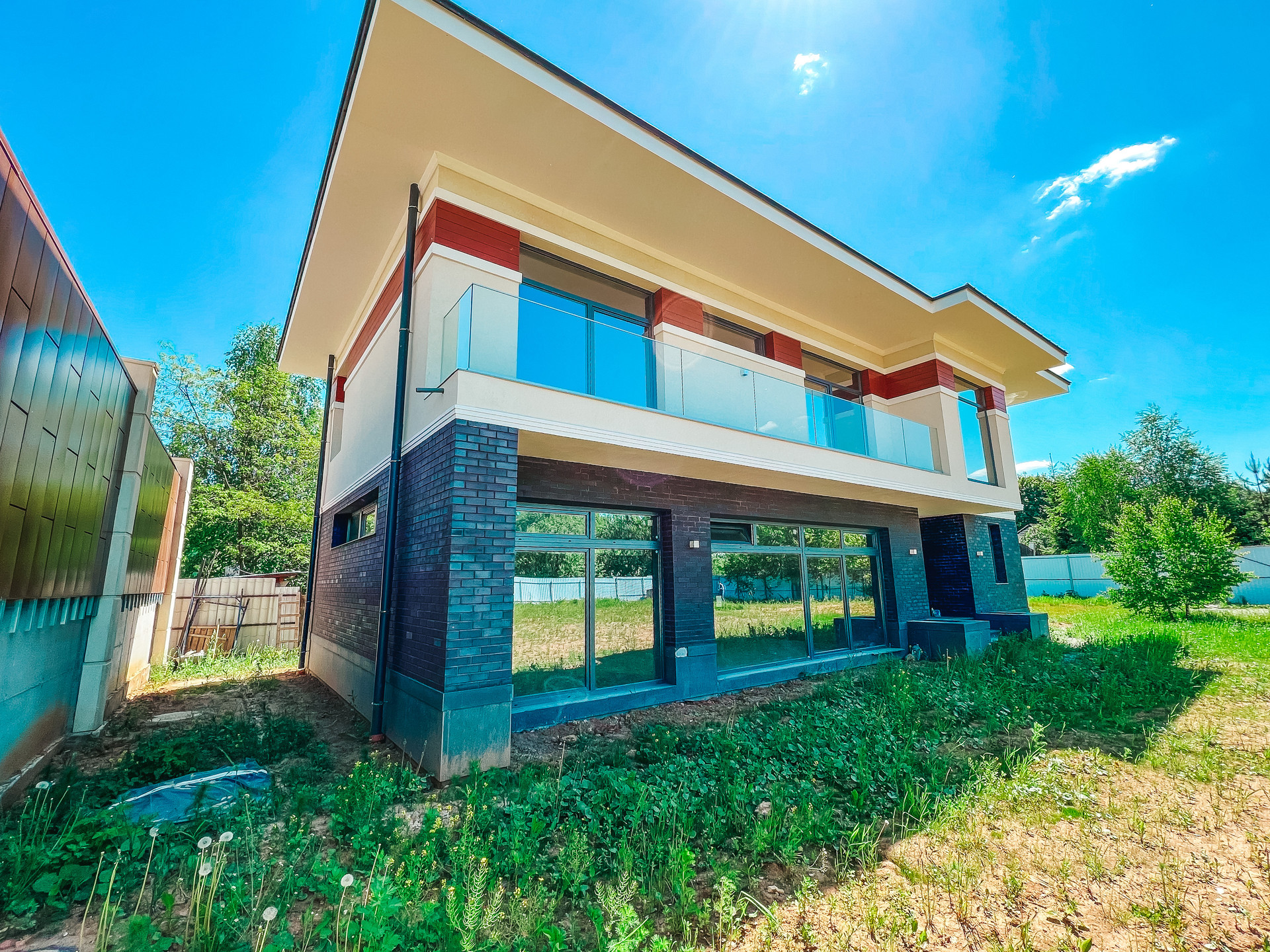 Продается новый дом 320 м2 в современном стиле с большим панорамным остеклением в пол на участке 16 соток, прилегает к КП Азарово. Дом строился по индивидуальному проекту, коробка полностью монолитная, фундамент монолитная плита, стены из керамзитобетонных блоков, утепление фасада 150 мм.