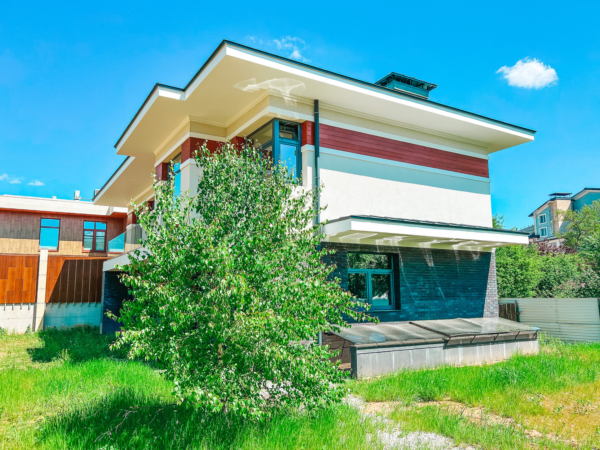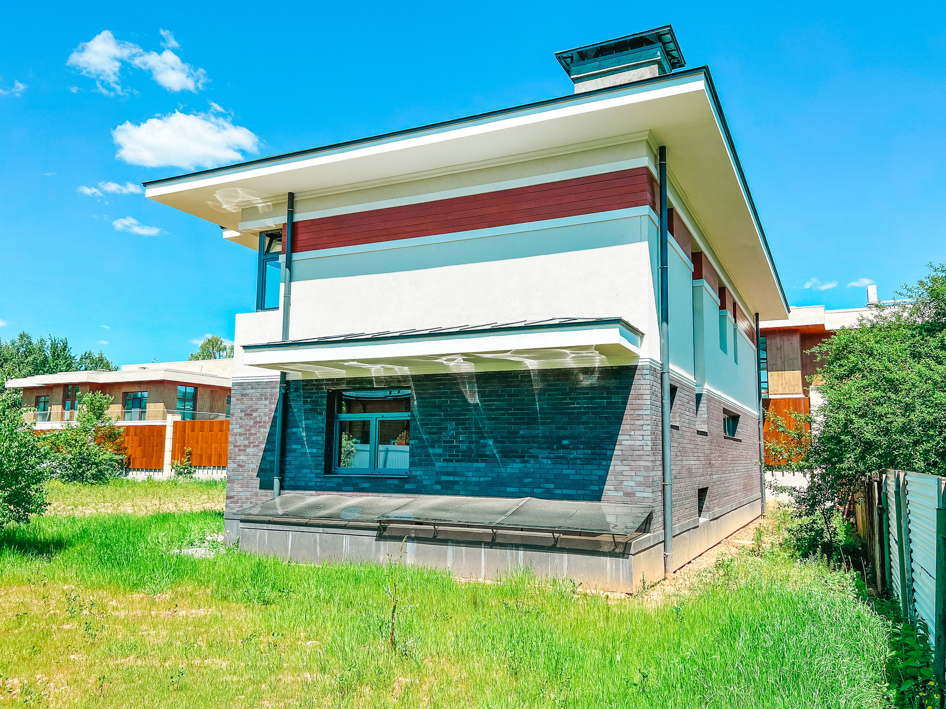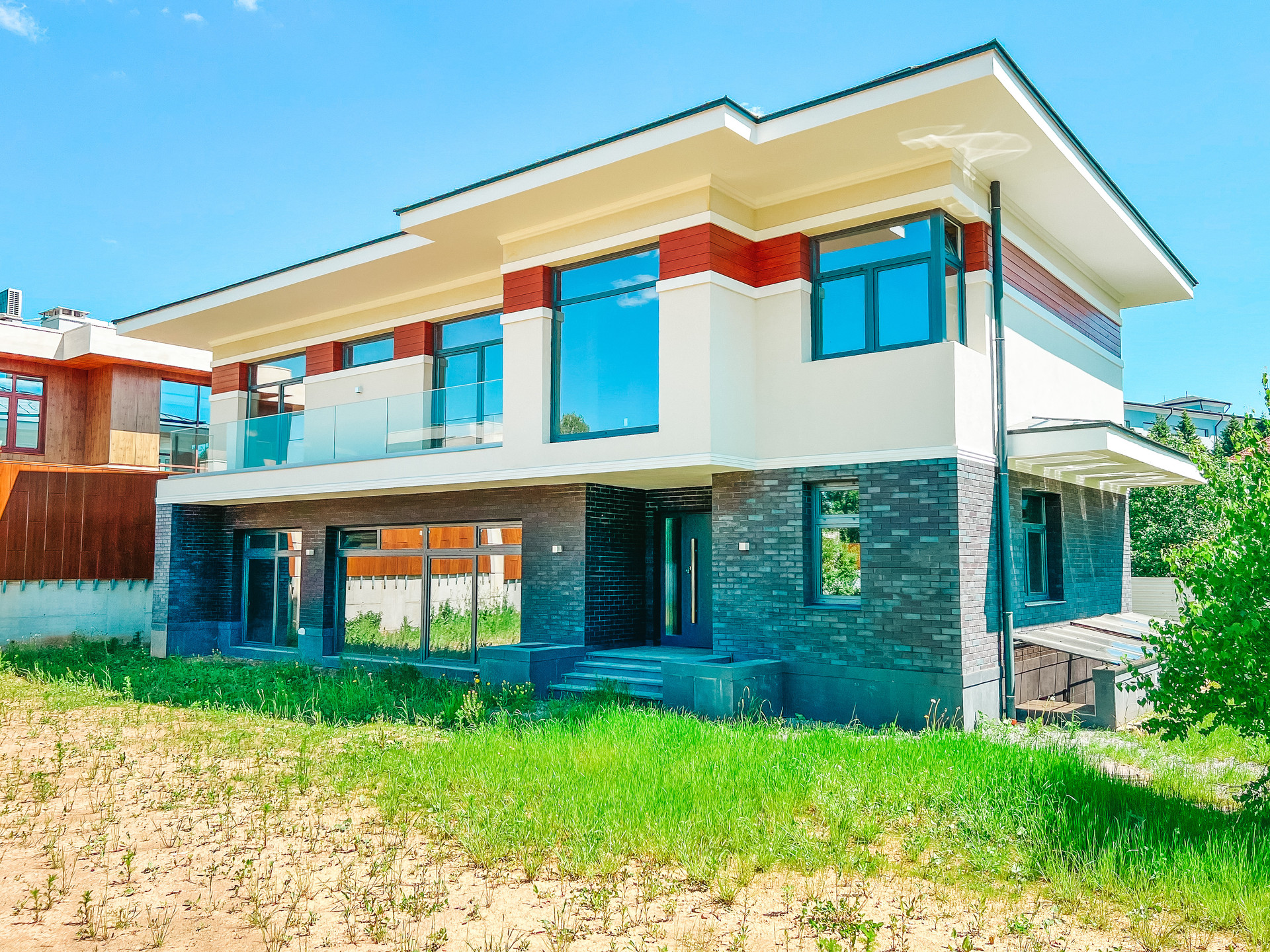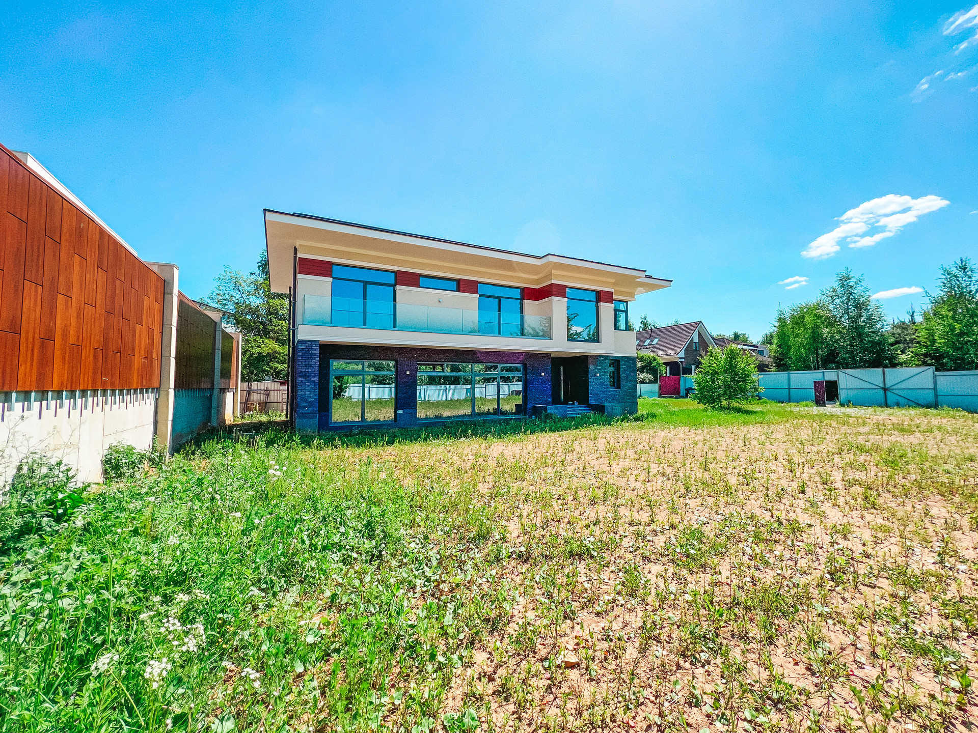 Продается новый дом 320 м2 в современном стиле с большим панорамным остеклением в пол на участке 16 соток, прилегает к КП Азарово. Дом строился по индивидуальному проекту, коробка полностью монолитная, фундамент монолитная плита, стены из керамзитобетонных блоков, утепление фасада 150 мм.