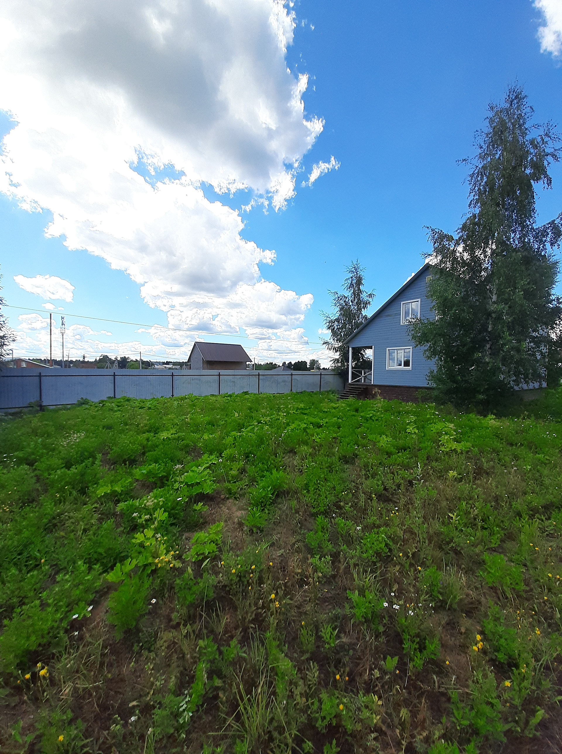 Участок ровный, правильной формы, насаждений нет, по периметру профильный забор.