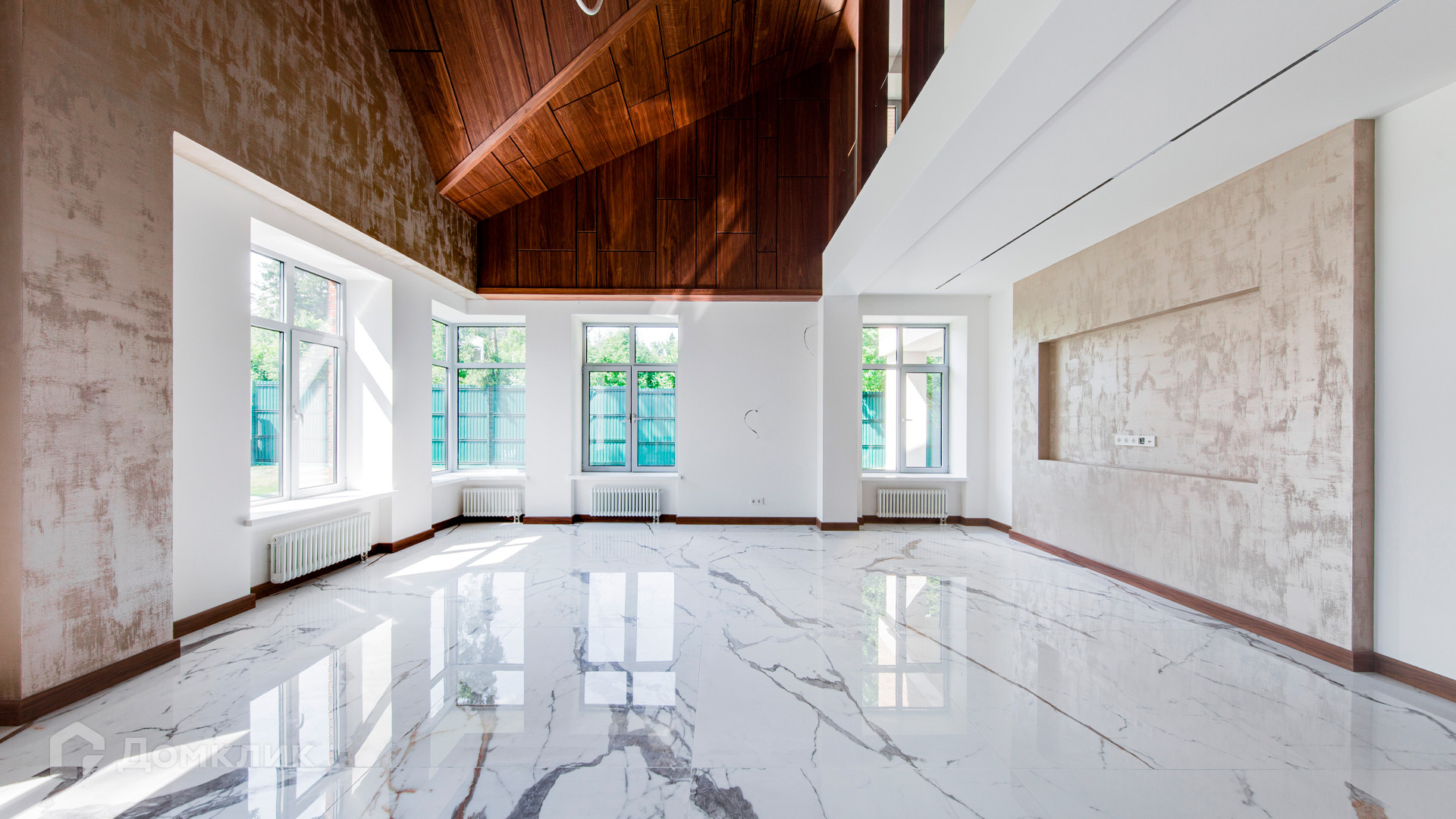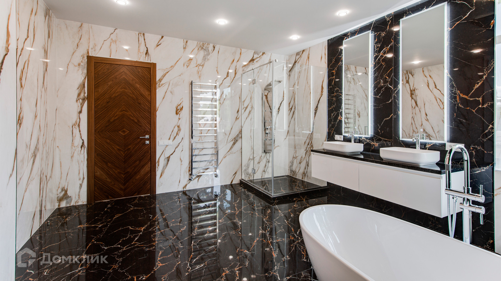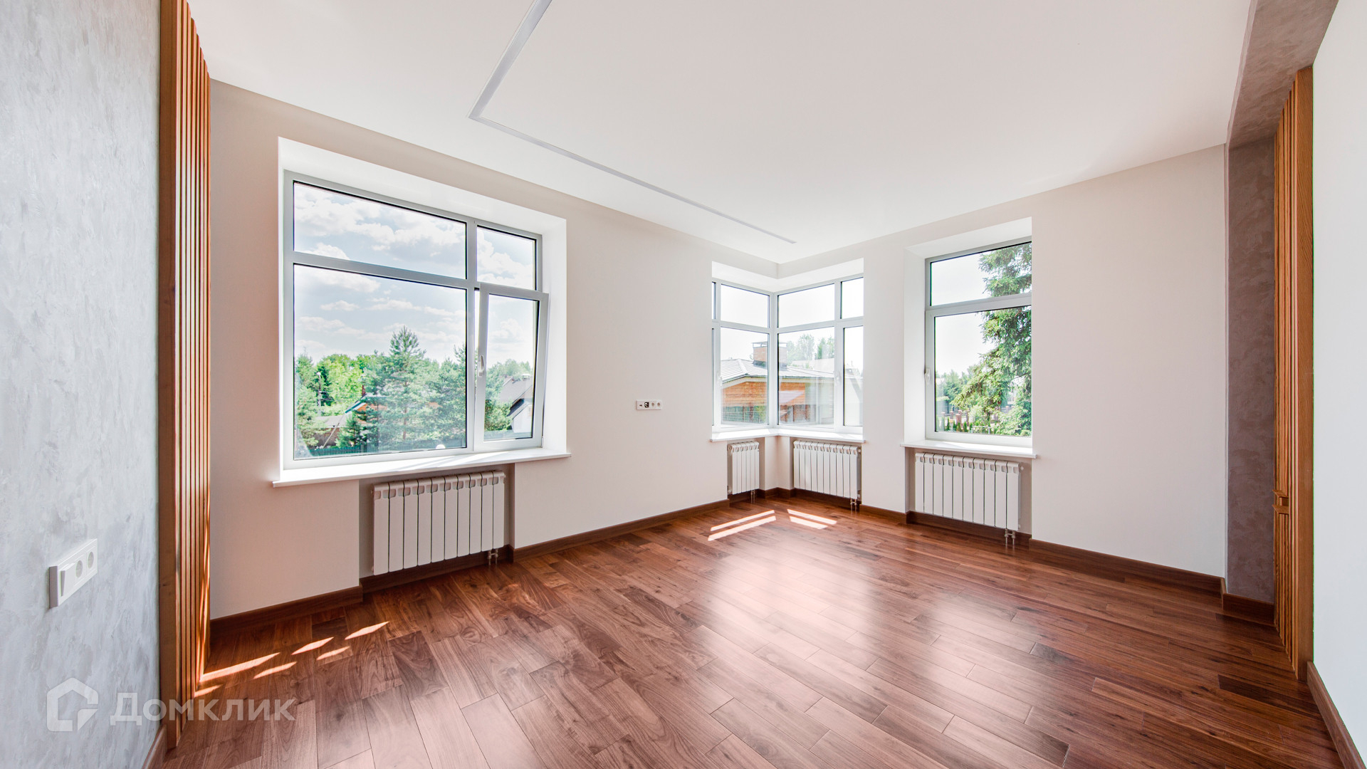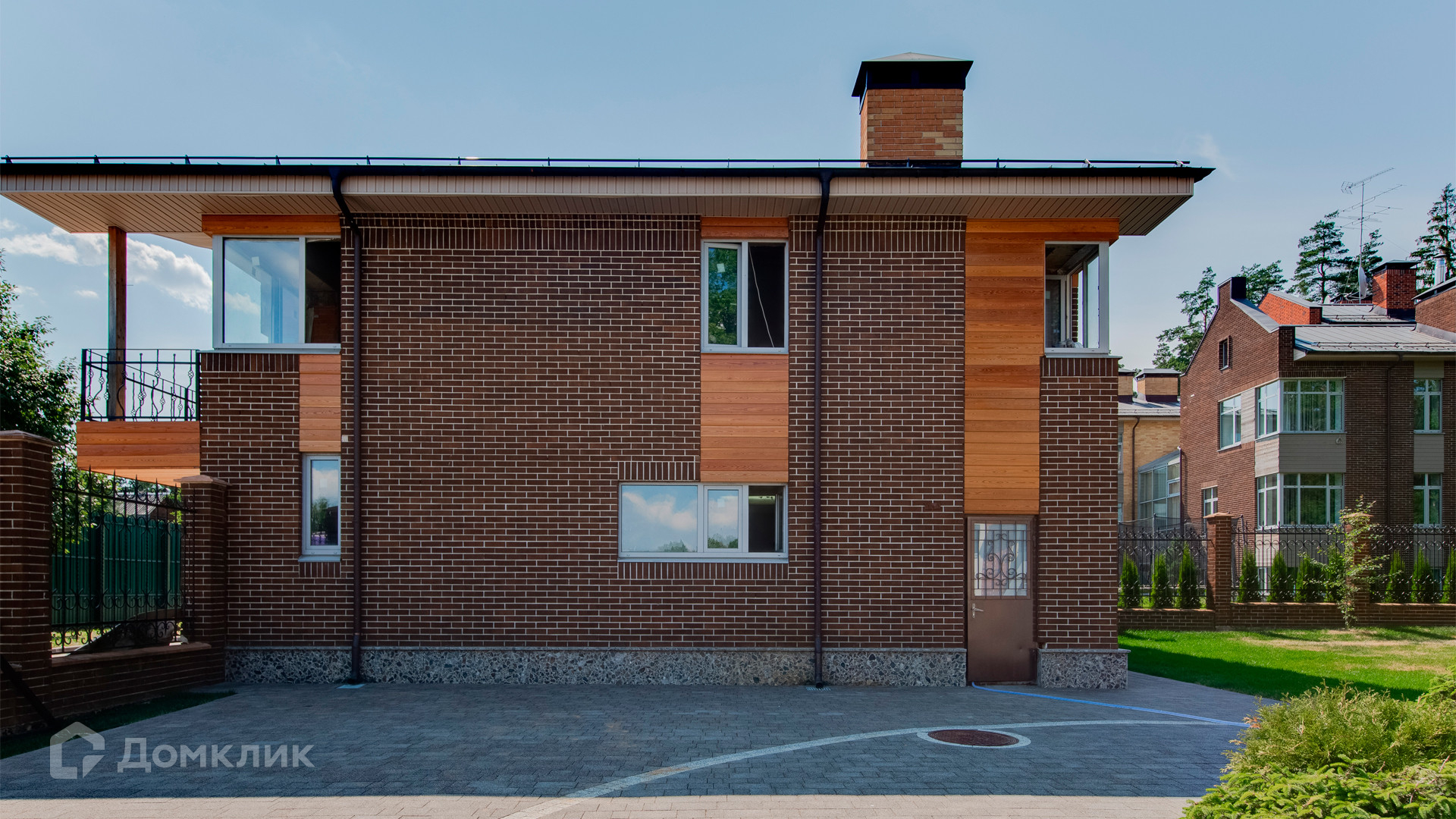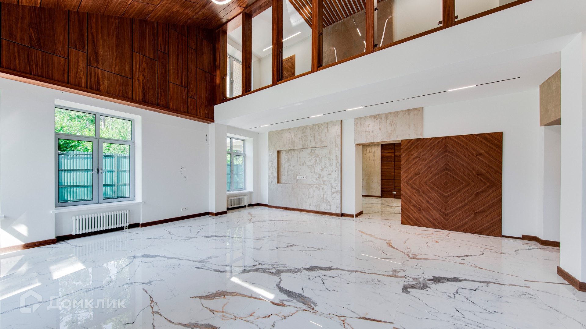 ID 10 267. Семёнково. Загородный дом площадью 550 м² построен на просторном участке у леса 25 соток. В современном интерьере преобладают природные фактуры — дерево и камень, молочные и песочные оттенки в сочетании с дизайнерским освещением создают атмосферу уюта. В коттедже спланировали 5 спален, гостиную со вторым светом и камином, столовую, кухню, кабинет. На территории расположен гараж с квартирой для персонала.