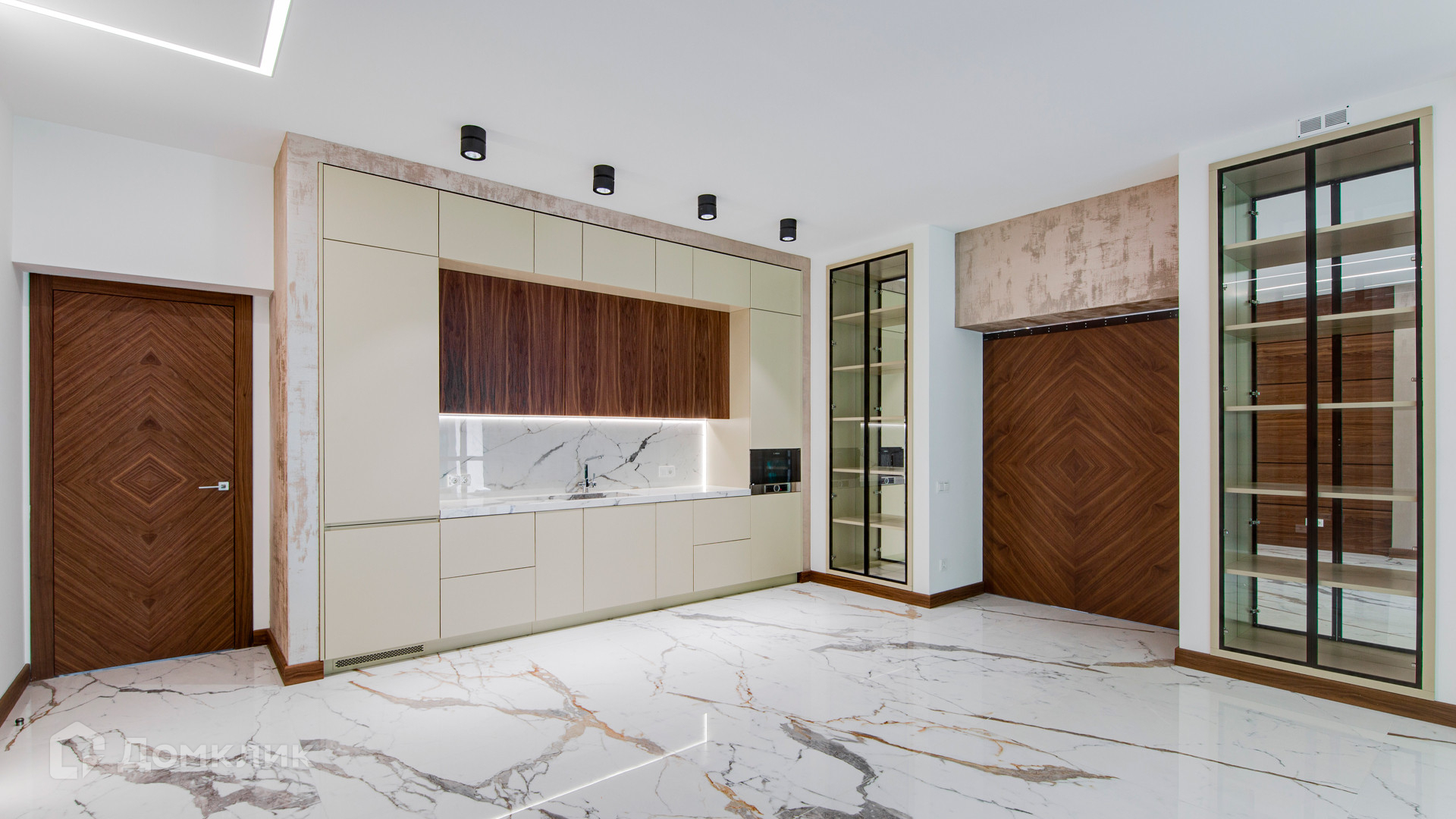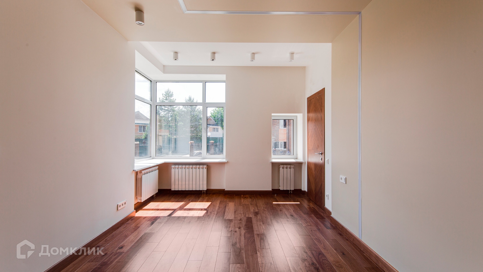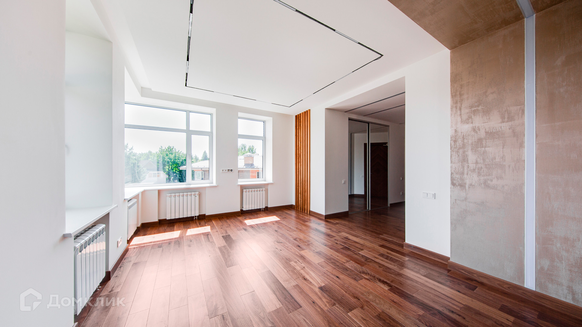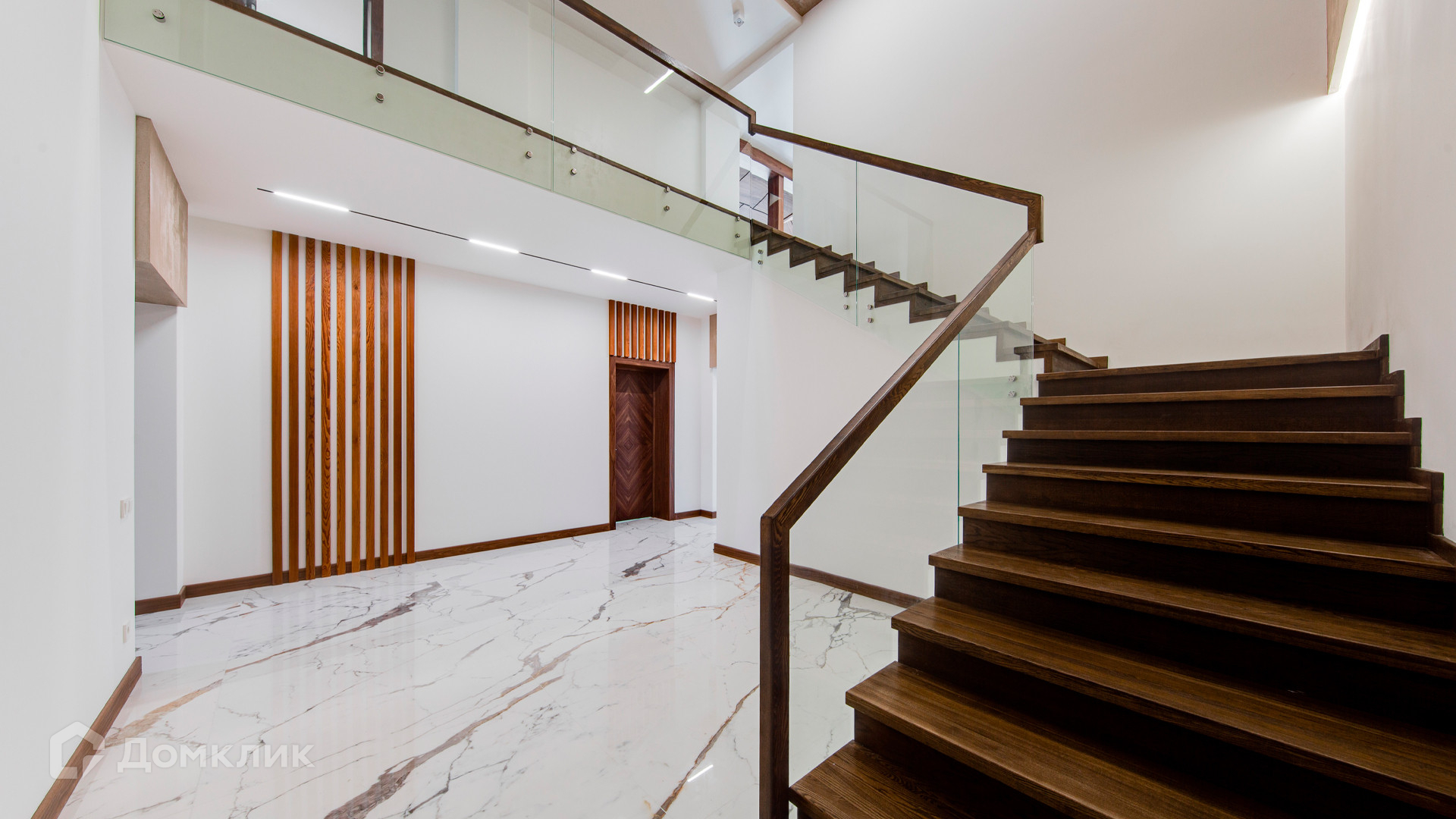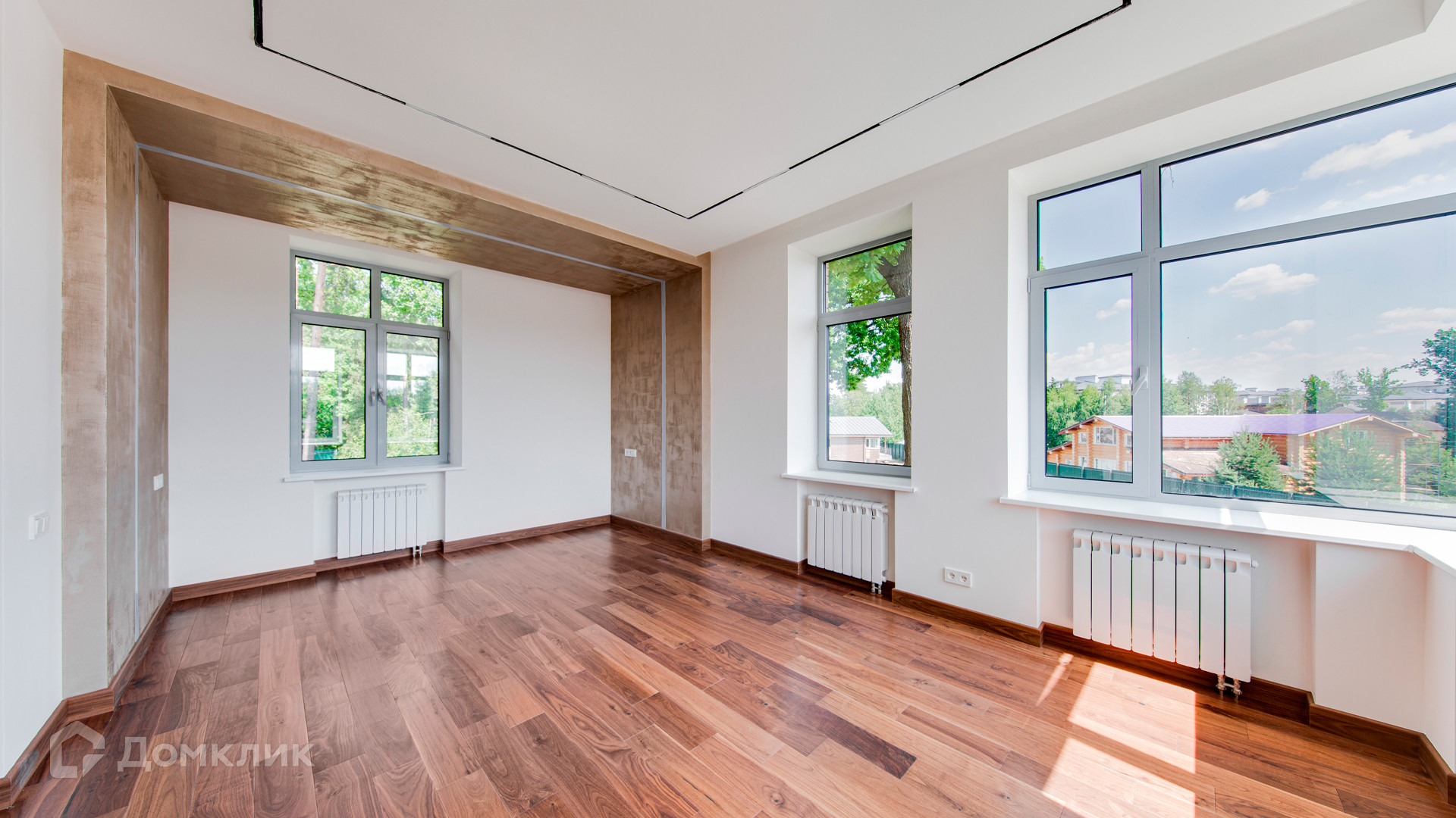 ID 10 267. Семёнково. Загородный дом площадью 550 м² построен на просторном участке у леса 25 соток. В современном интерьере преобладают природные фактуры — дерево и камень, молочные и песочные оттенки в сочетании с дизайнерским освещением создают атмосферу уюта. В коттедже спланировали 5 спален, гостиную со вторым светом и камином, столовую, кухню, кабинет. На территории расположен гараж с квартирой для персонала.
