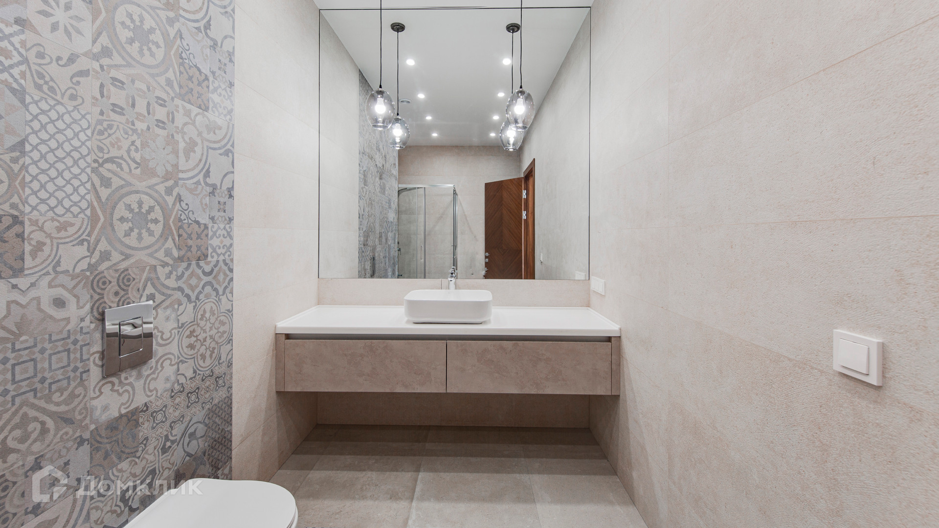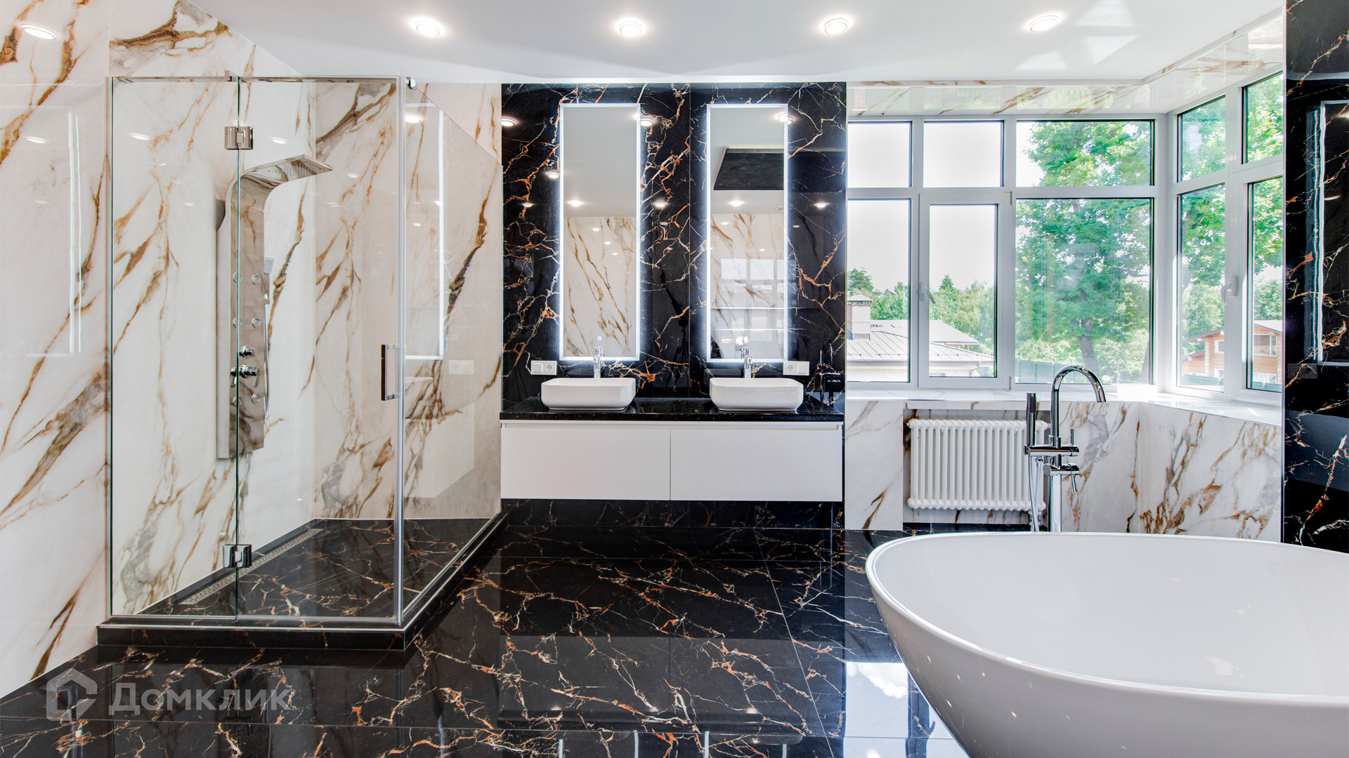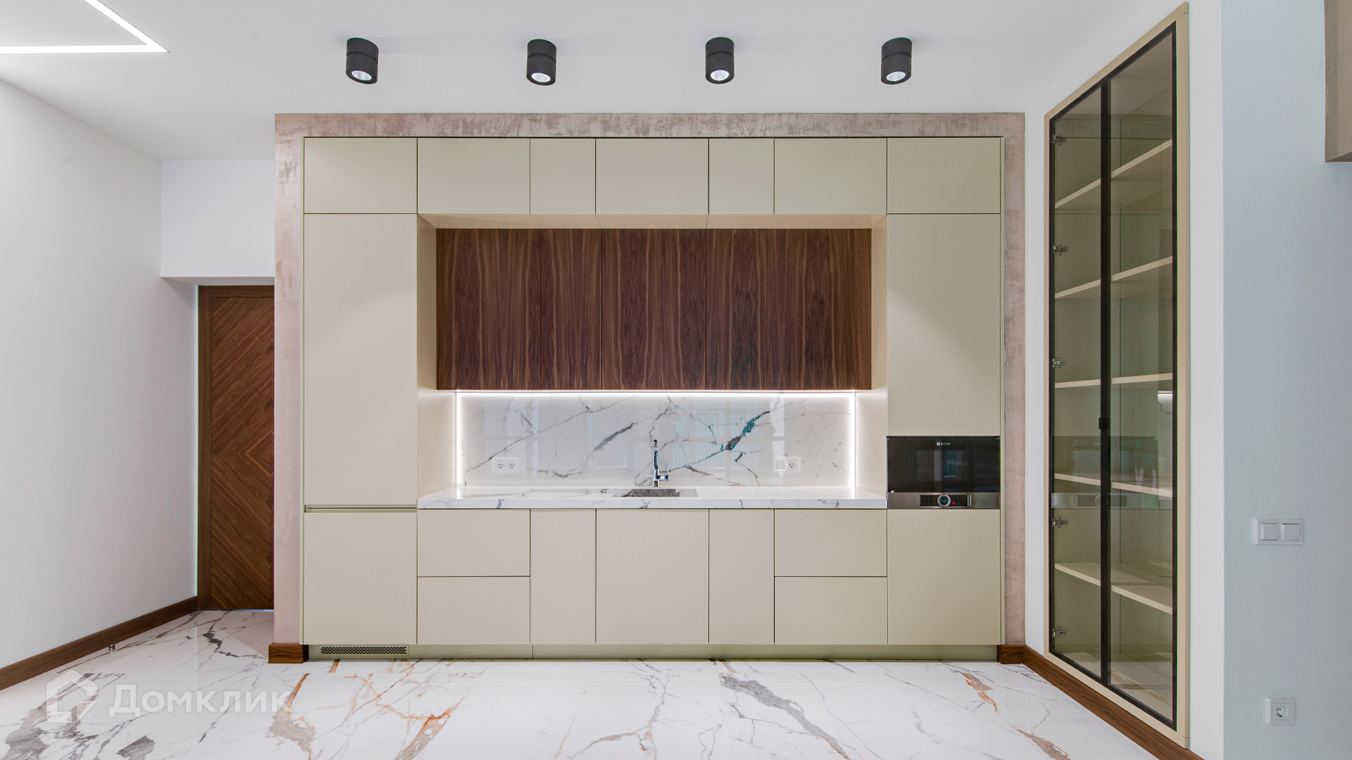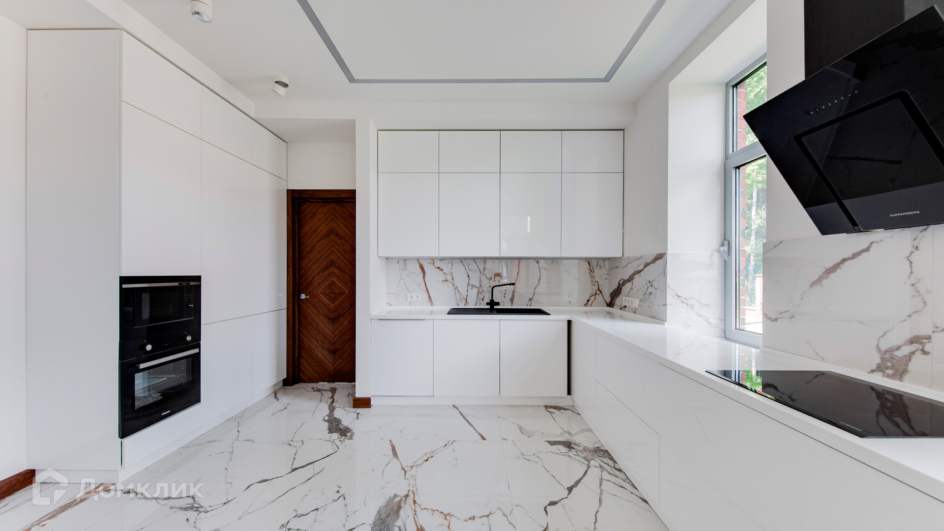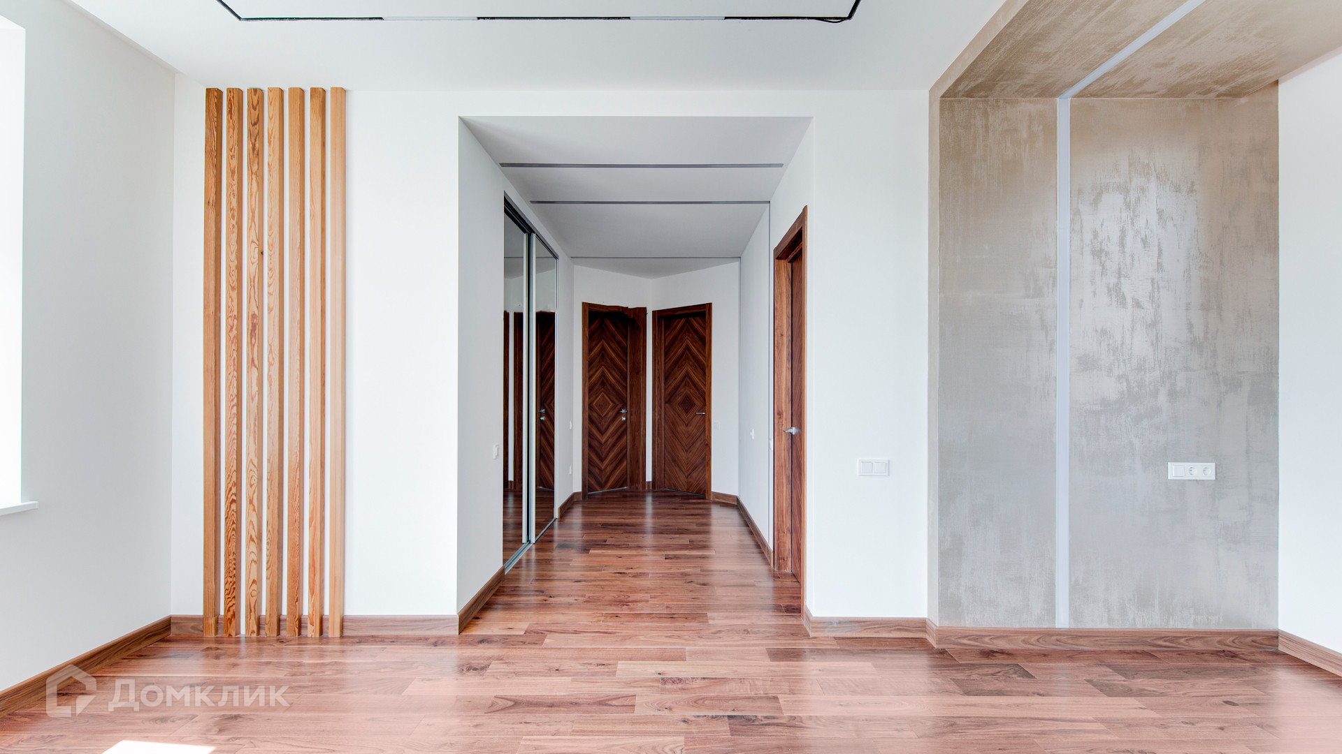 ID 10 267. Семёнково. Загородный дом площадью 550 м² построен на просторном участке у леса 25 соток. В современном интерьере преобладают природные фактуры — дерево и камень, молочные и песочные оттенки в сочетании с дизайнерским освещением создают атмосферу уюта. В коттедже спланировали 5 спален, гостиную со вторым светом и камином, столовую, кухню, кабинет. На территории расположен гараж с квартирой для персонала.