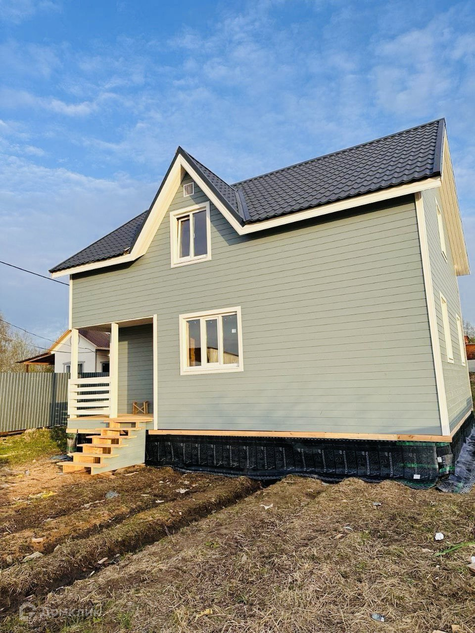 Строительство дома осуществлено в 2024 году. Дом построен по каркасной технологии (утепление 200), двухэтажный дом для круглогодичного проживания. В доме установлены пластиковые окна, вход оборудован металлической дверью.