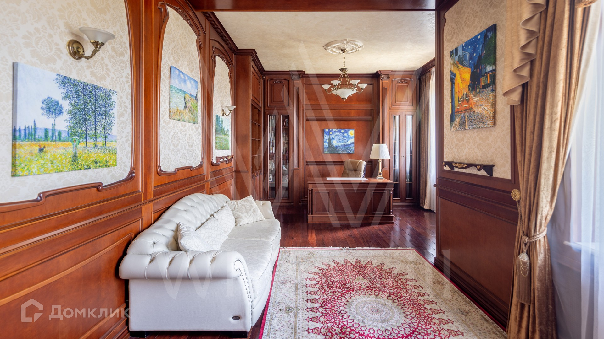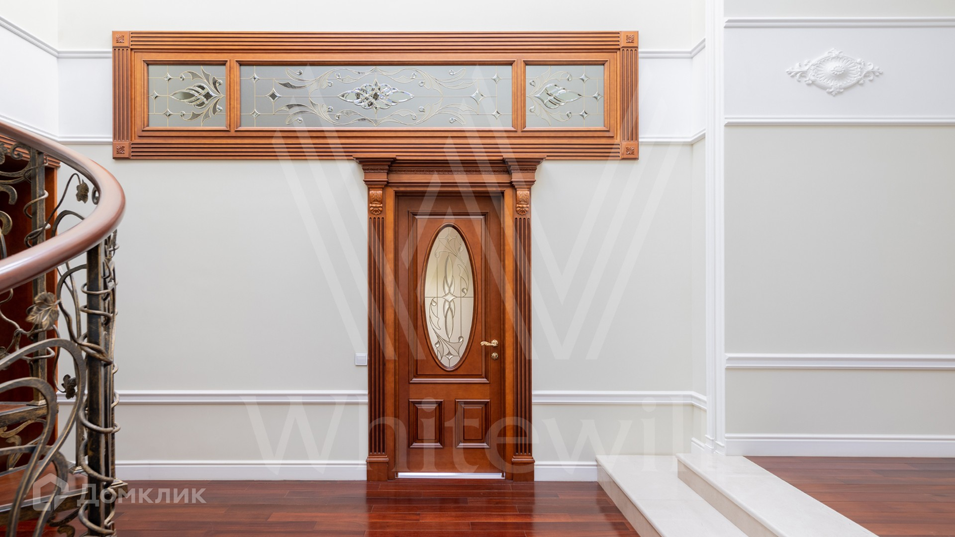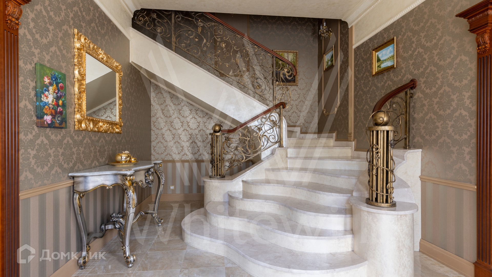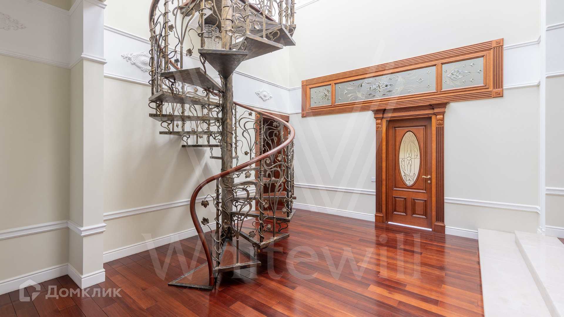 ID 11 773. Семёнково. Загородный особняк в стиле русского модерна площадью 2009 м² построен на просторном участке 0,9 гектара с собственным озером. Фасад дома облицован бежевой штукатуркой, декорирован панно, рустовкой и коваными элементами. В отделке интерьера использованы светлые, теплые оттенки, создающие атмосферу уюта. Планировкой резиденции предусмотрены 3 спальни, 2 гостиные, одна из которых с камином и вторым светом, кухня, 2 столовые, кабинет и SPA-зона с бассейном длиной 16 метров, хаммамом и сауной. На территории построены 4 гаража, гостевой дом, летний домик, беседка и зона барбекю, а также обустроены парк, сад, фонтан и паркинг. На участке с 2-мя въездами выполнены ландшафтный дизайн и дренажные работы, установлена система автополива, вымощены дорожки и оборудовано уличное освещение.