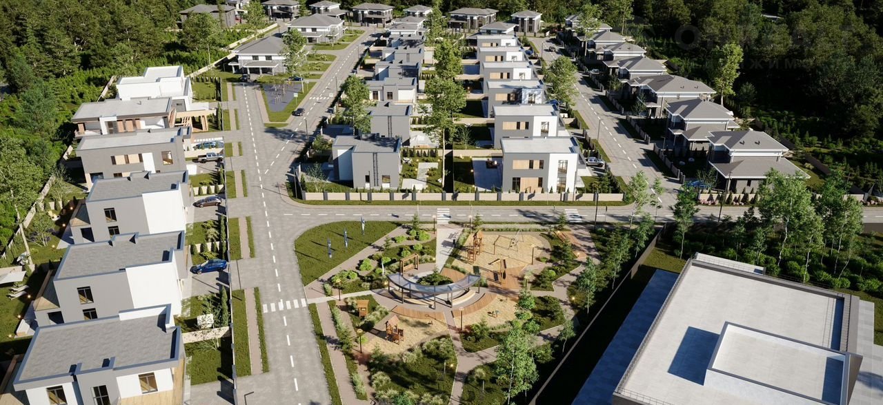 В поселке проложены широкие асфальтированные дороги, есть детские и спортивные площадки, охраняемая территория с видеонаблюдением, гостевая парковка у КПП, действует круглосуточная охрана.