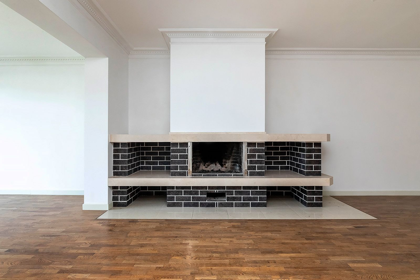 1 этаж: кухня-гостиная-столовая с камином, выходом на террасу и участок, 2 спальни со своими ванными комнатами, гардеробная;