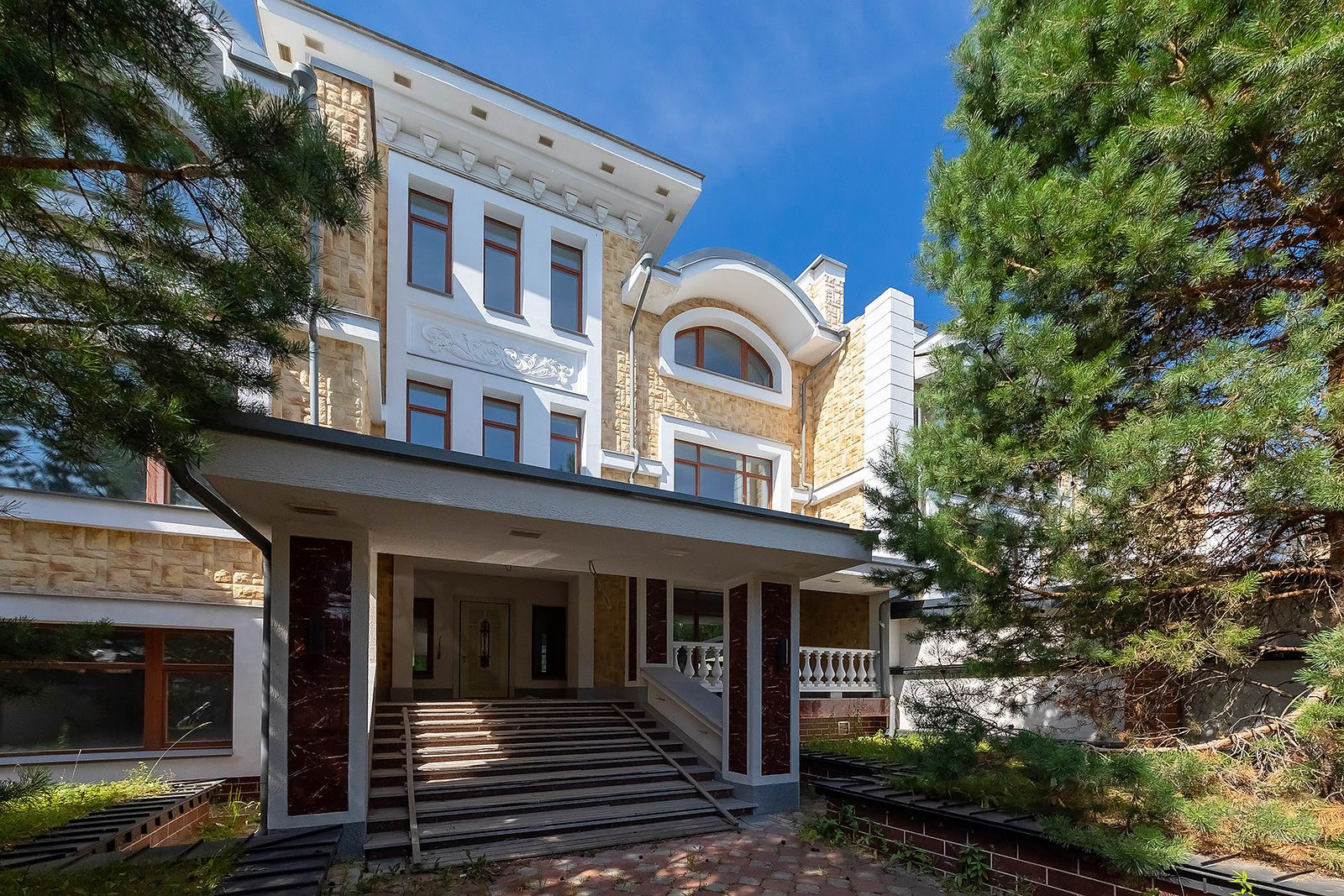 2 этаж: 2 спальни, каждая с собственной ванной и гардеробной комнатами, 2 спальни, санузел, балкон;