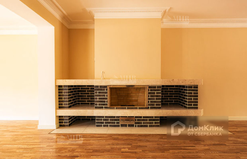 На первом этаже гостиная+кухня, камин, выход на задний двор. Антресоль первого этажа - две спальни (каждая имеет санузел с душевой).
