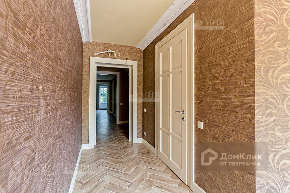 В доме 2 этажа + цокольный, 4 спальни, каждая со своим санузлом, этажи соединяет мраморная лестница с подсветкой. На цокольном этаже находится котельная (немецкая техника WOLF), 1 комната с совмещенным санузлом, прачечная и гостевой санузел. На первом этаже гостиная + кухня, камин, выход на задний двор (участок около 1,5 сотки). Антресоль 1 этажа - 2 спальные комнаты с санузлами. На втором этаже 2 двойные спальные комнаты со своими санузлами и выходом на балкон. На мансардном этаже оборудована кладовая.