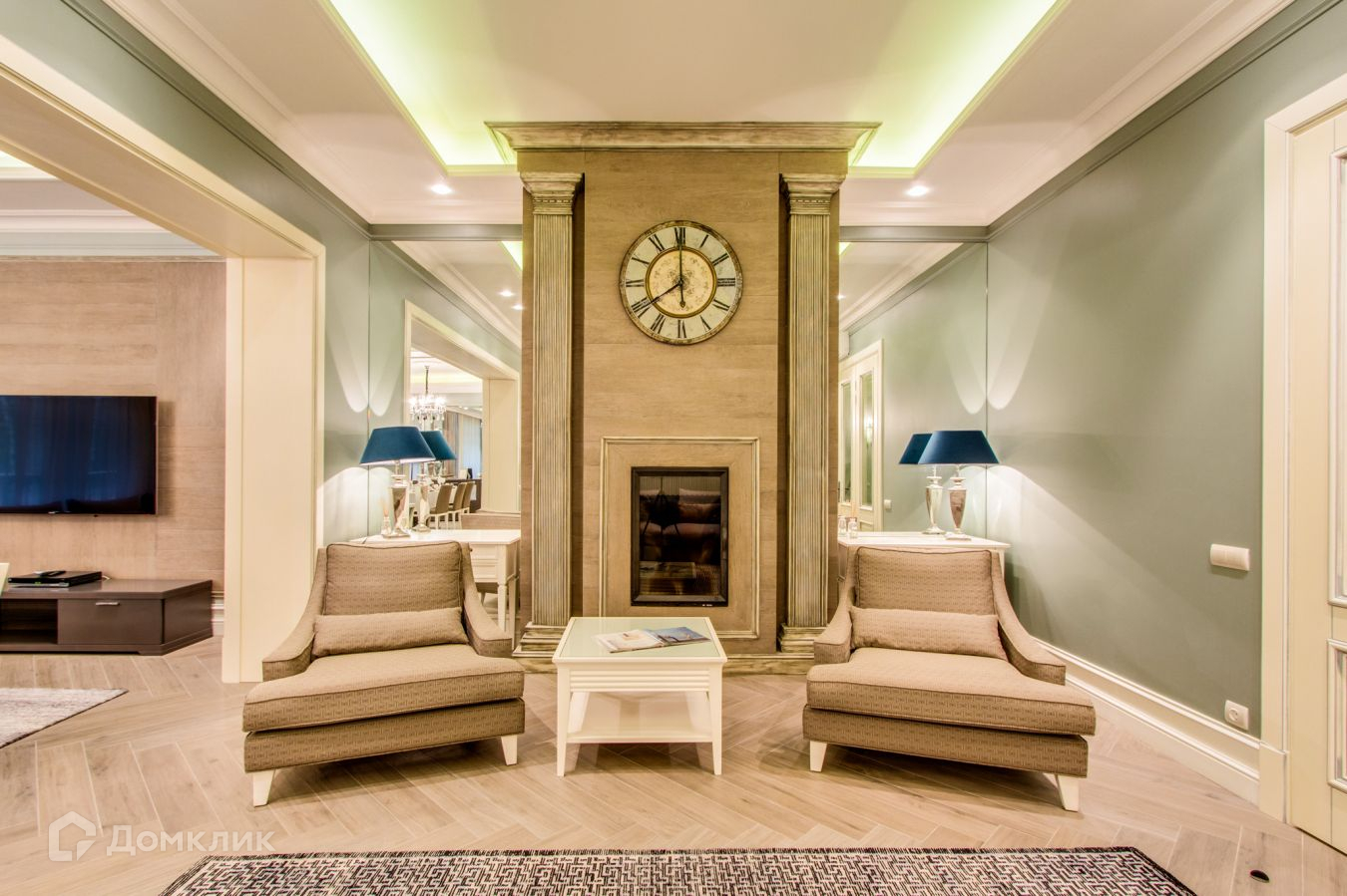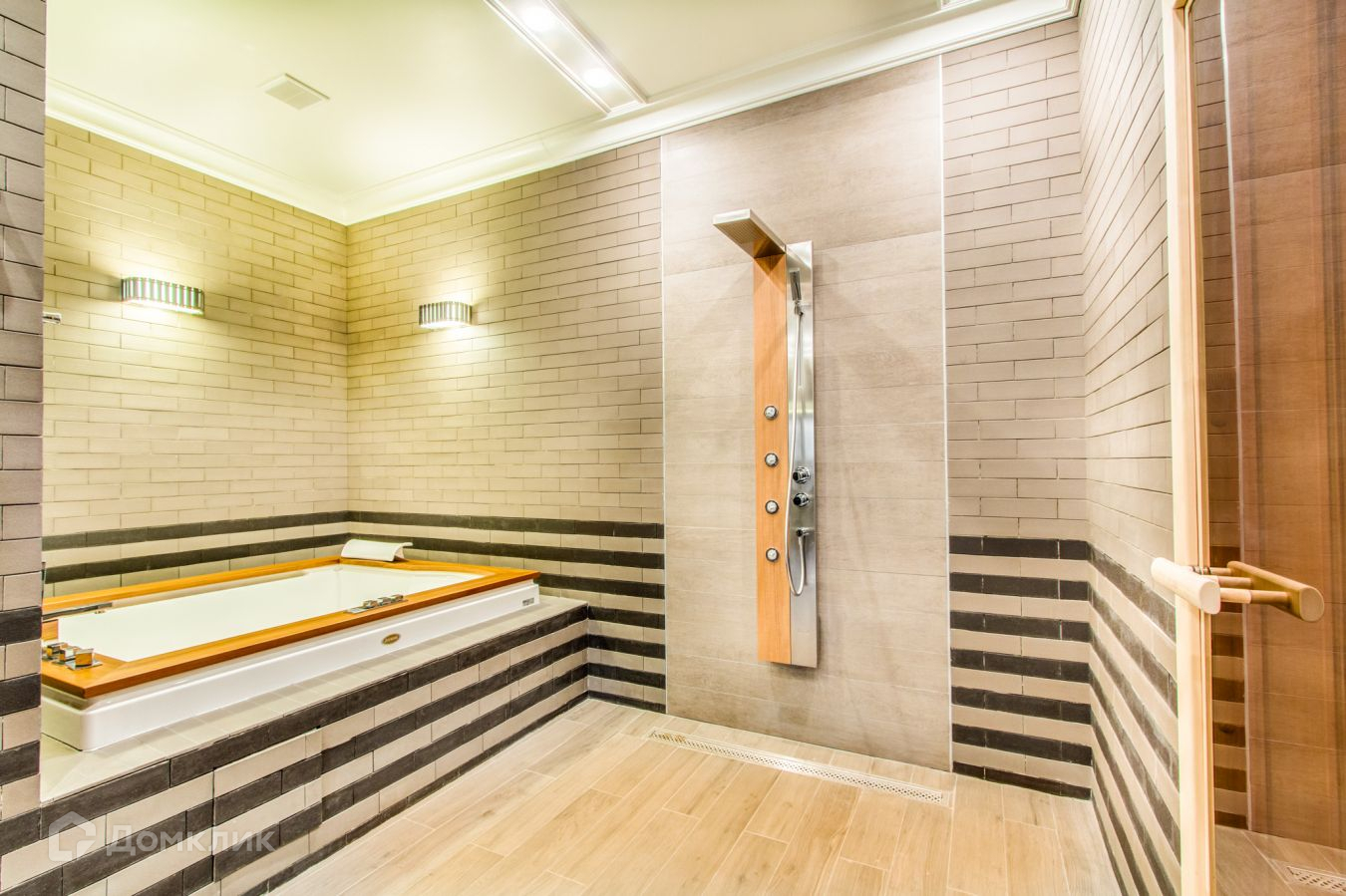 СПА зона с сауной, кухней, столовой, камином.
