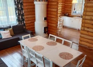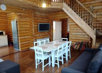 Продается большой уютный бревенчатый дом с просторной гостиной, кухней, тремя комнатами и двумя санузлами. В доме качественная современная мебель, новая проводка, канализация. На территории так же располагается гостевой дом с тремя спальными комнатами и большой баней на первом этаже. По всей территории уложены удобные дорожки с фонарями, одна из которы... |