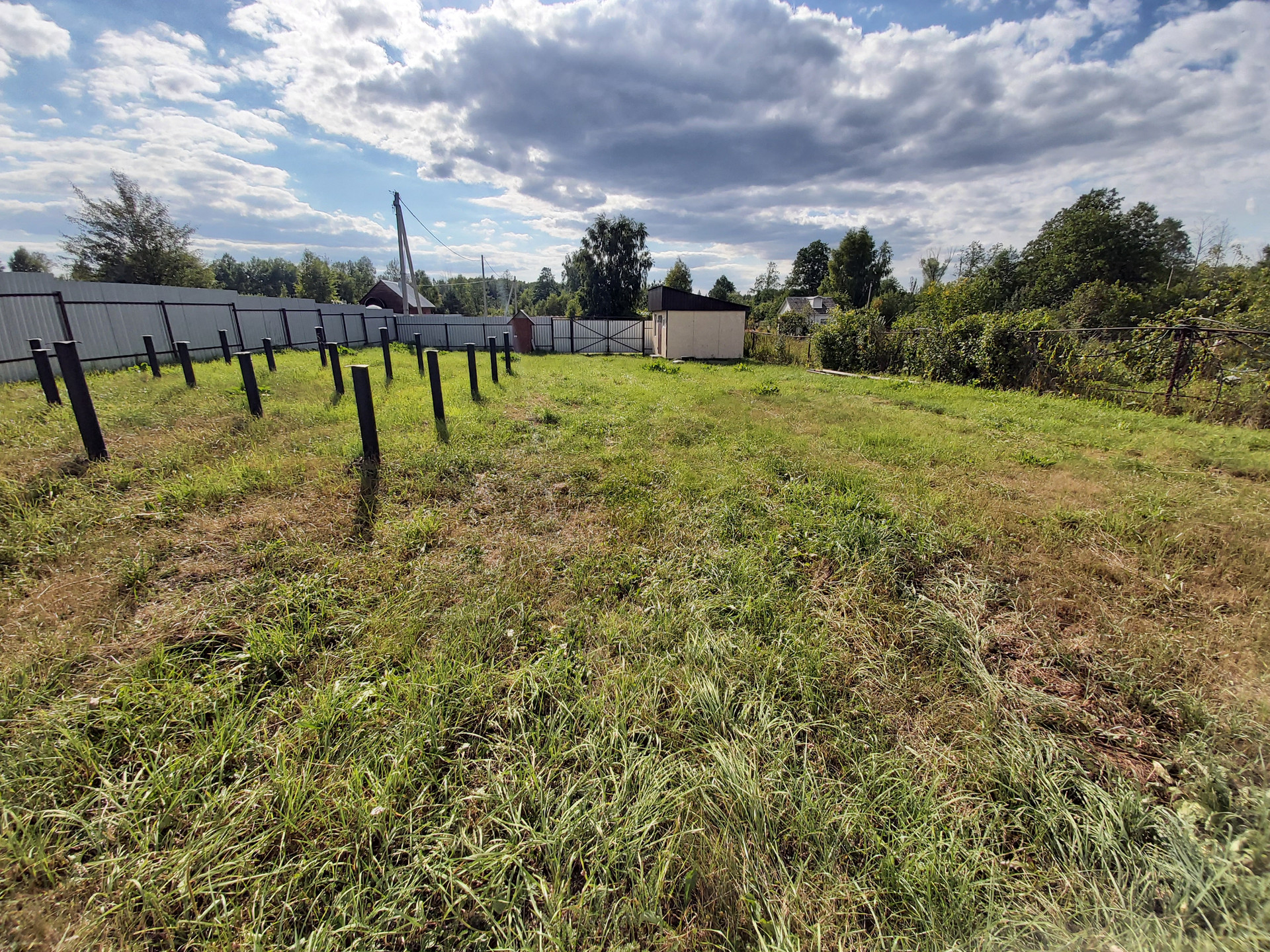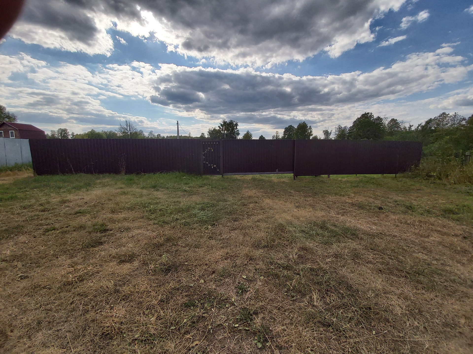 Сзади участка распашные ворота и калитка.