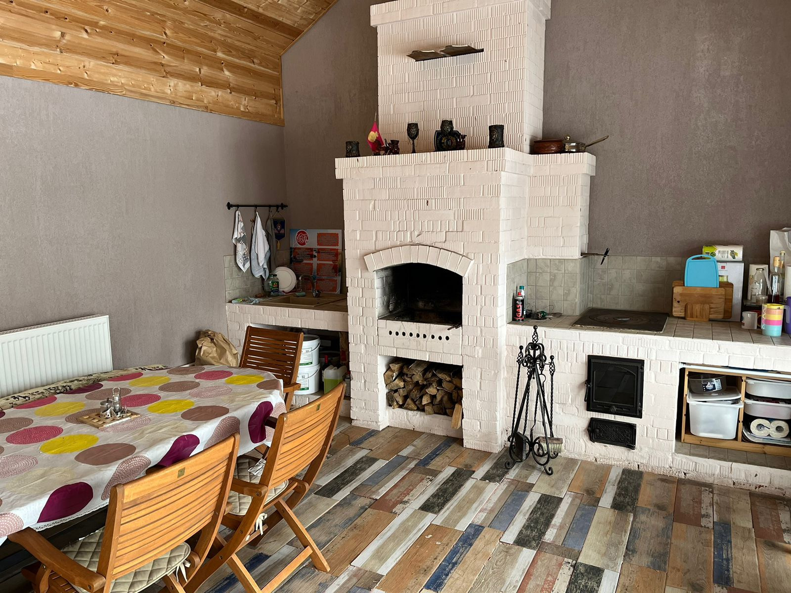 Дом на 15 сотках земли. Каркасный. Расположен в экологически чистом месте. Рядом лес, 2 пруда. Красивая природа. Удобное расположение- 5 минут до исторической части города на машине. Рядом выход на Рязанское шоссе. Асфальтированное покрытие в деревне. Деревня не проходная ( транспорт только местных жителей). Рядом коттеджные поселки, а это дом в самой деревне. Строится храм. Школа в 5- ти минутах езды на машине, ходит школьный автобус. Коммуникации - газ, электричество, скважина( система очистки воды + отдельно питьевая вода) , септик. В доме 4 спальни, 2 полноценных санузла, гостиная с кухней, бойлерная, чердачное помещение, веранда. В доме спутниковое ТВ, Интернет, камеры наблюдения, охранная система с пультами и дистанционным управлением, датчик дымности. На участке уложена тротуарная плитка, уложен рулонный газон, выделенные зоны под качели, бассейн, костровая. На территории навес на 6 машин. Гостевой дом с баней 7/14. Комната на 2-м этаже и одна требует отделки. Газ , вода, электричество, канализация. Система очистки воды, отдельный газовый котел, теплый пол+ батареи. Барбекю отапливаемая с водой и канализацией. Хоз помещение - гараж. Сзади участка расположена асфальтированная площадка с экраном из сетки. Силовой комплекс. Дорога асфальтированная сзади. На участке вода для полива, электрические розетки, подсветка дорожек.