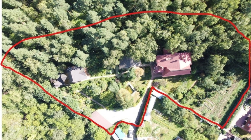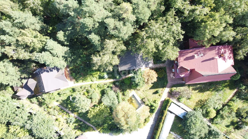 Усадьба совмещена из двух участков 23 и 12 соток. На территории усадьбы имеются три жилых дома: 540 кв. м., 240 кв. м. и гостевой домик на 60 кв. м.