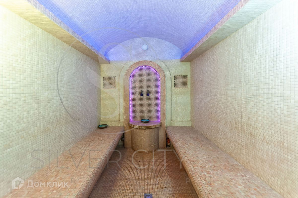 1 блок: просторный оборудованный спортзал с выходом на эксплуатируемую кровлю, бассейн 4 x10 (глубина 2м), русская баня, хамам.