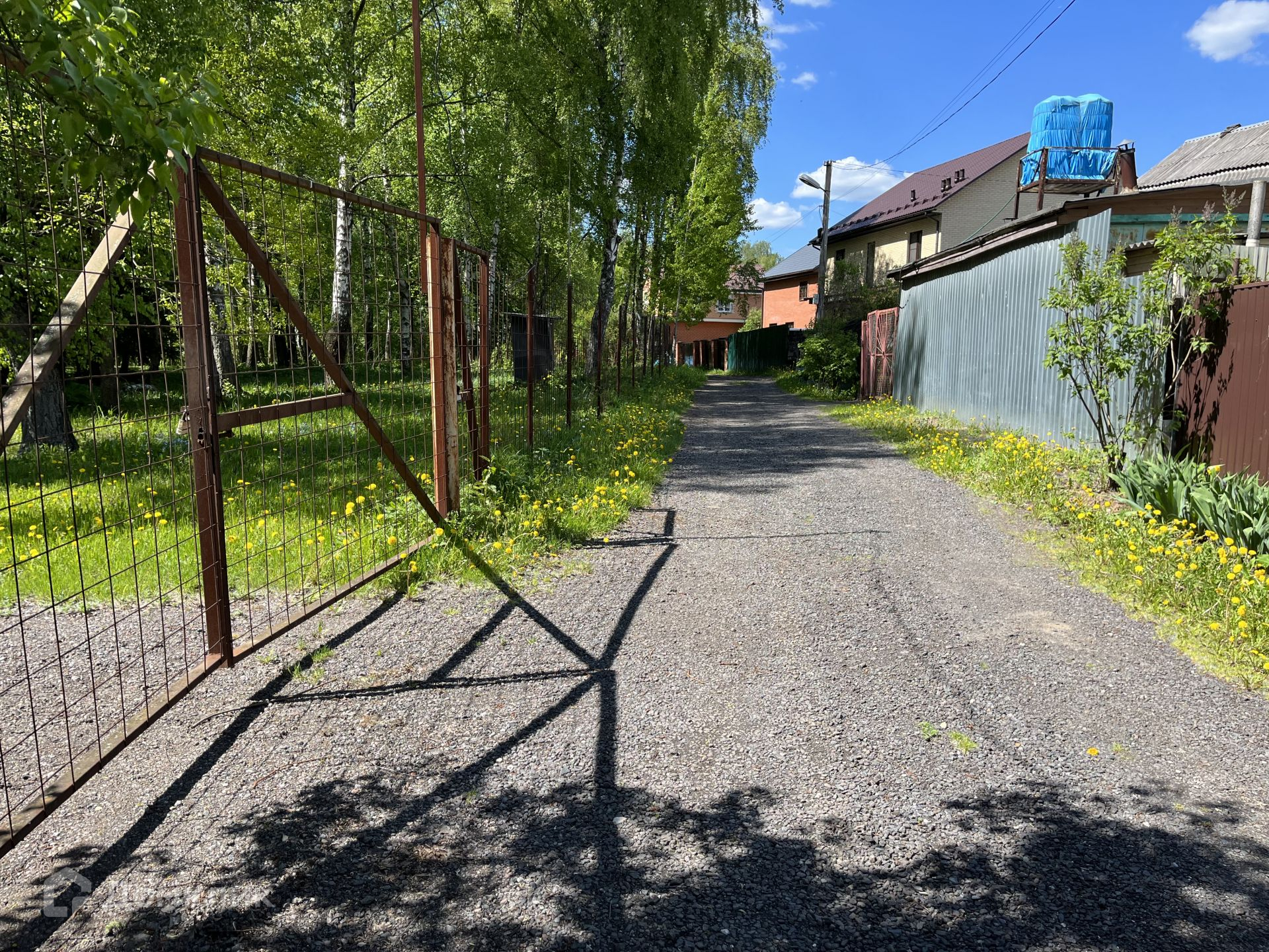 Участок ровный, с удобным подъездом. Въезд к участку оснащен автоматическими воротами. Рядом детская площадка и пруд.