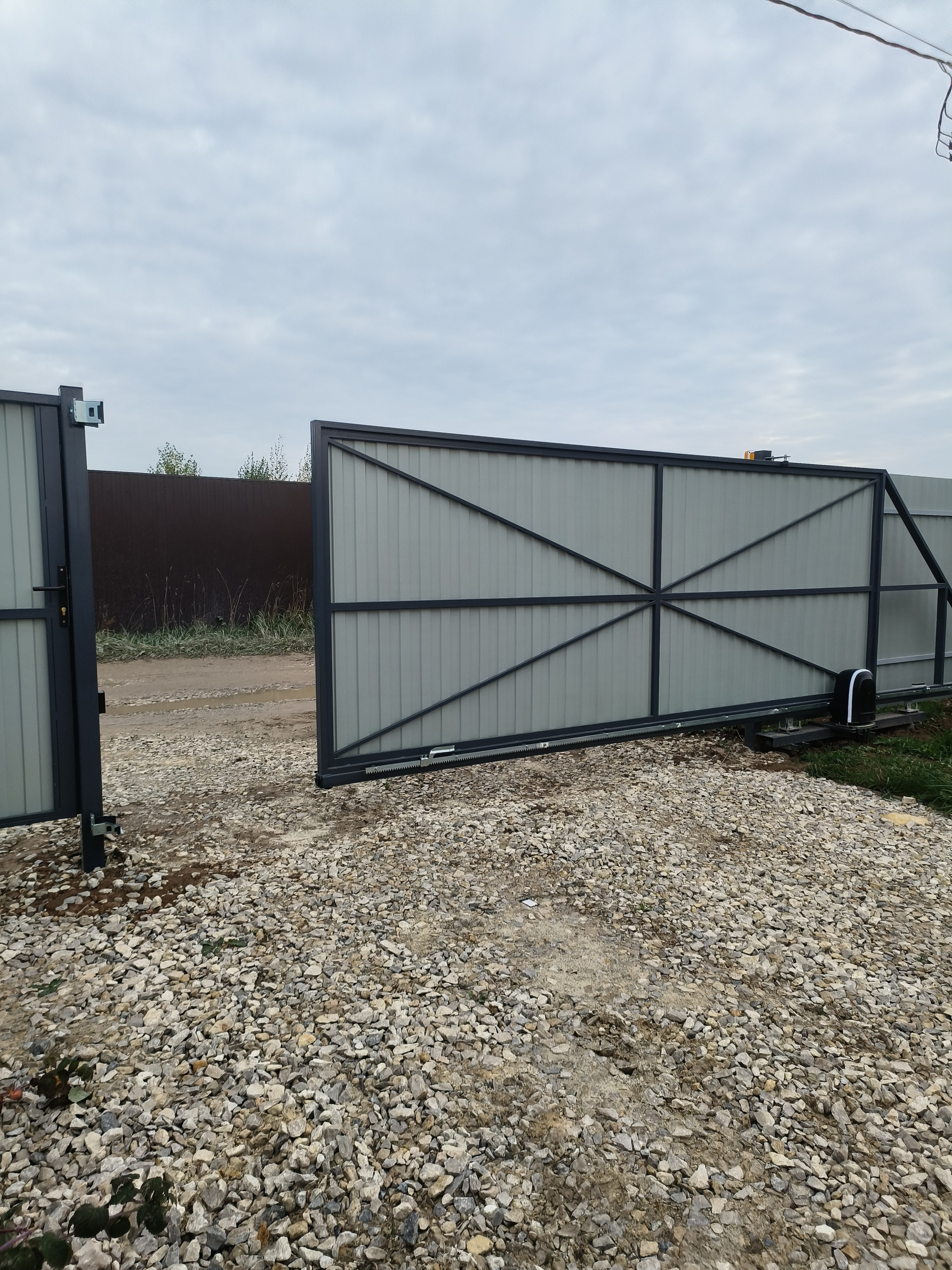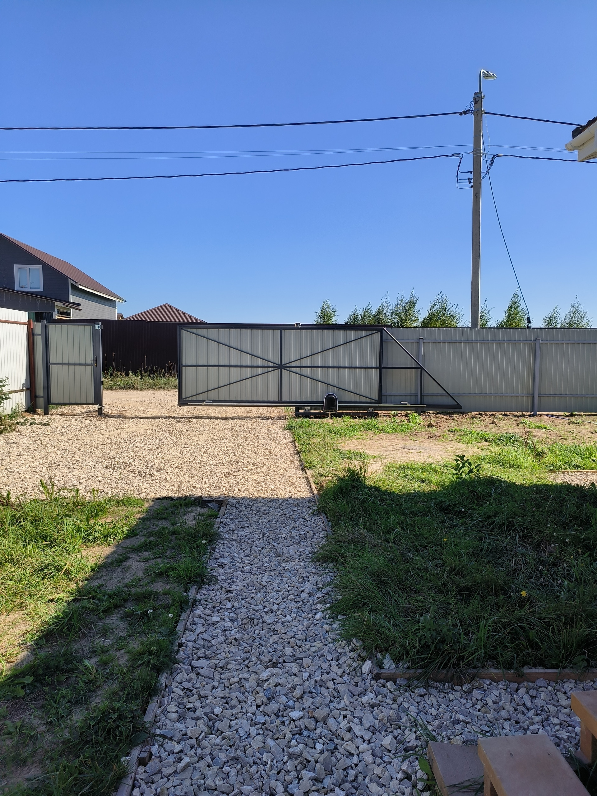 Участок ровный забор профлист, откатные ворота, заезд для авто.