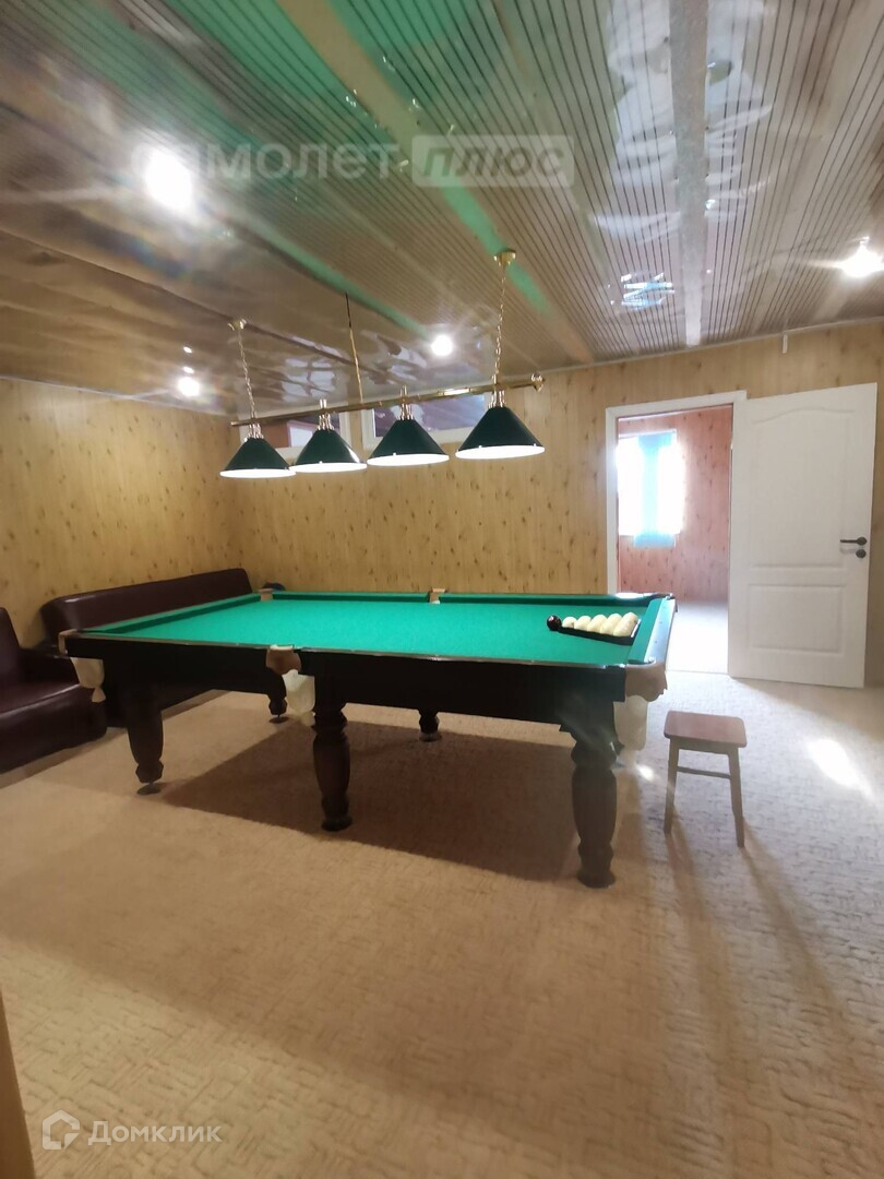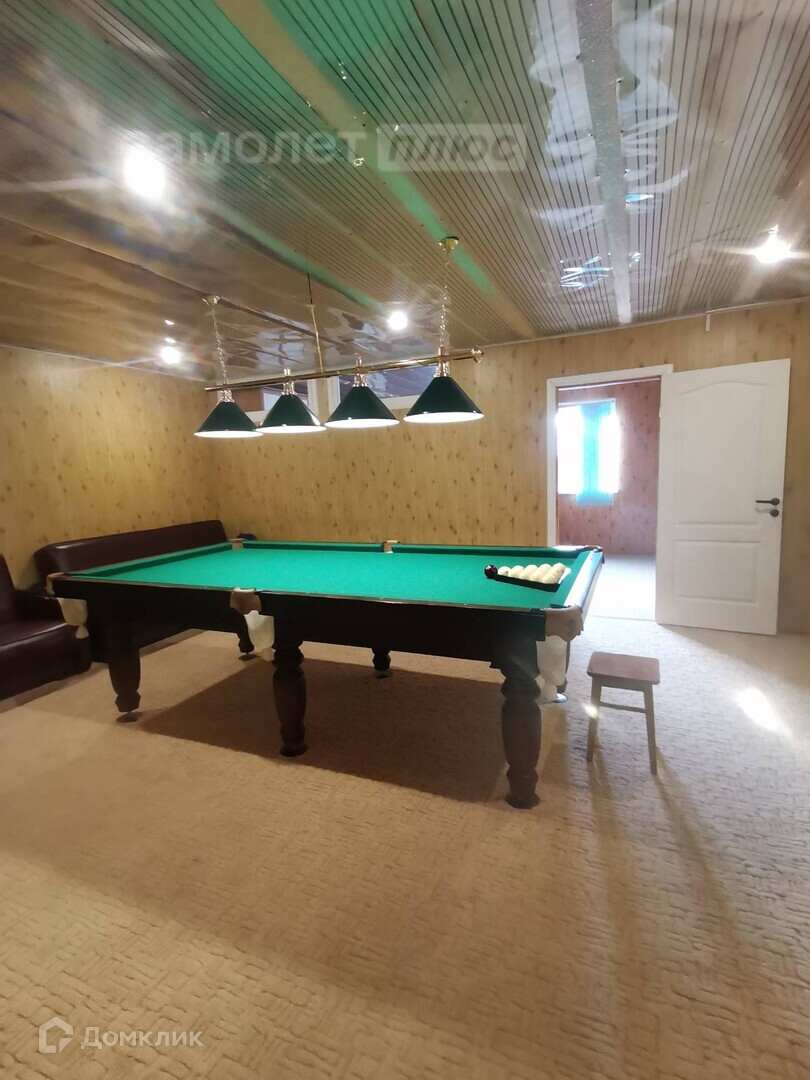 На первом этаже дома большой гараж и санузел, на втором - кухня, бильярдная и спальная комната.