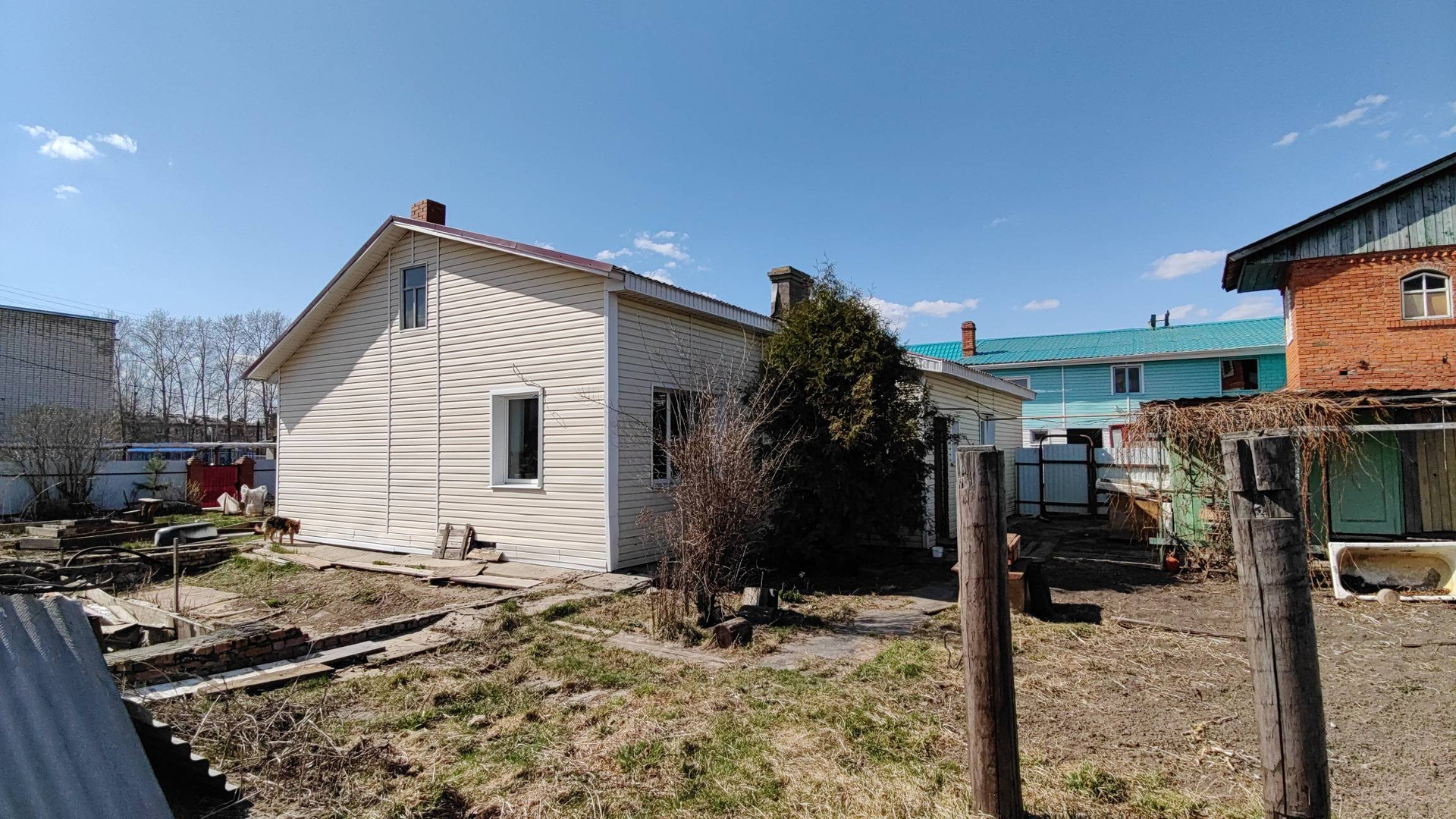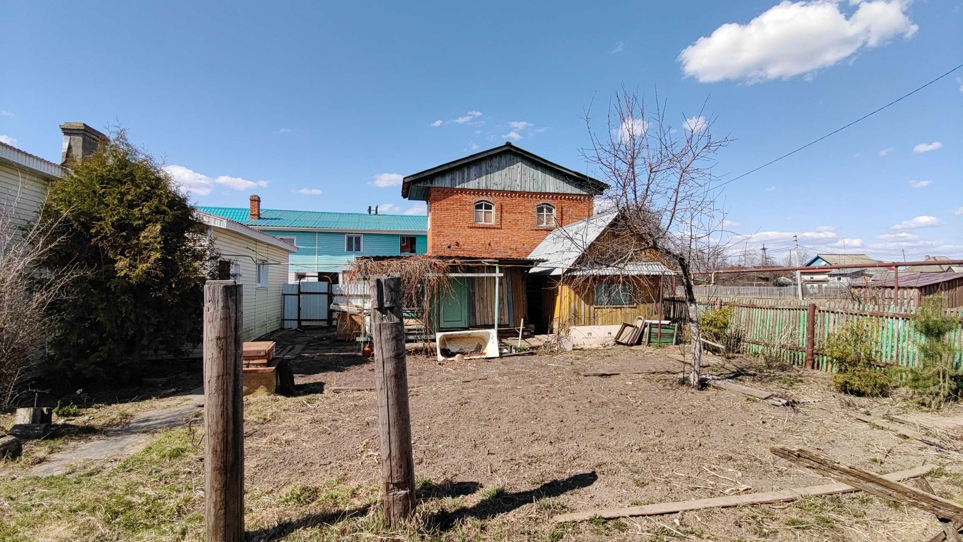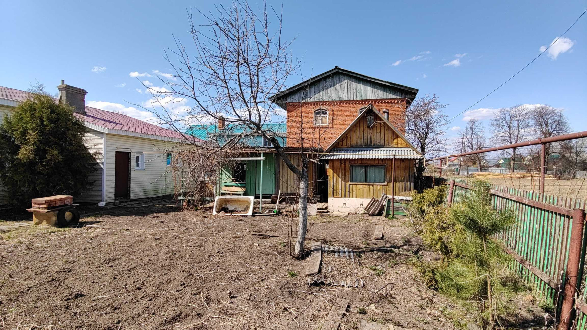 Дом из бревна, кирпича и блоков.