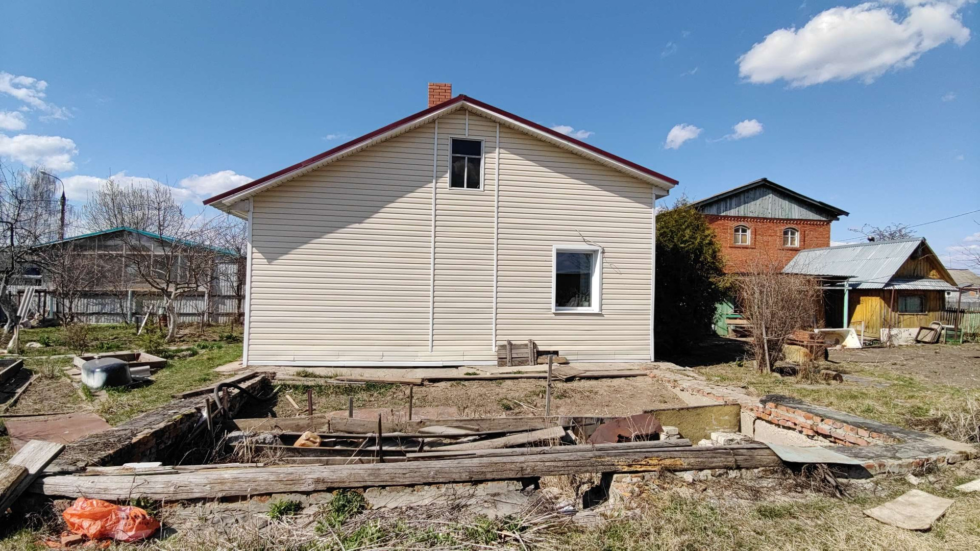 Проходная комната и две спальни построены из бревна и обложенный кирпичом.