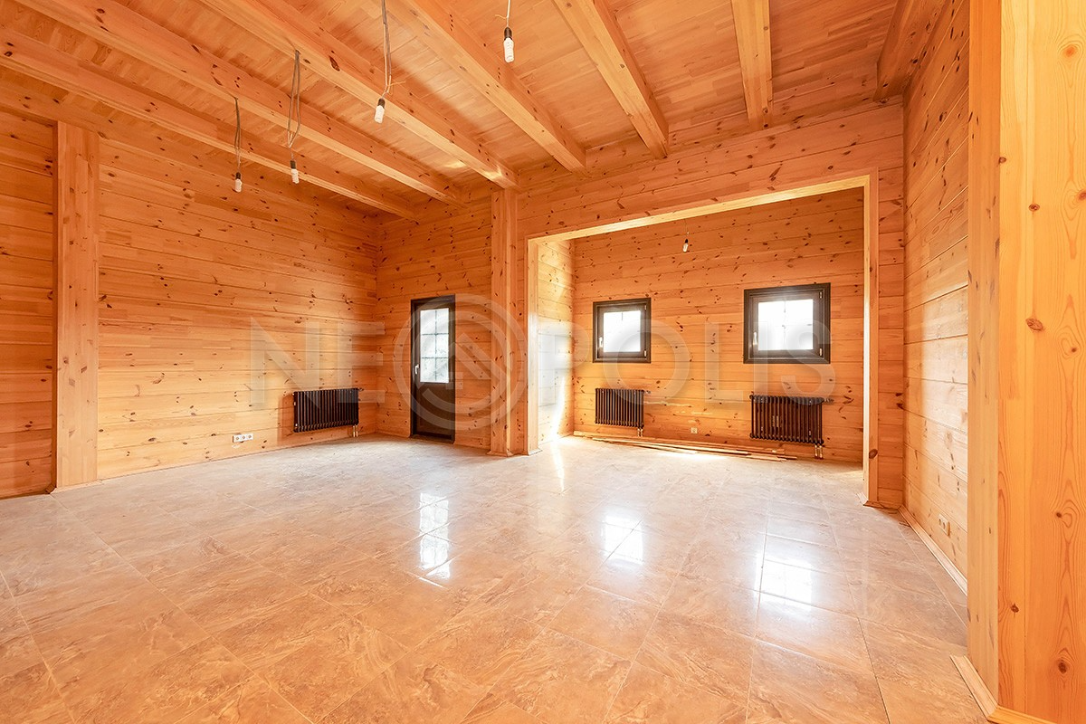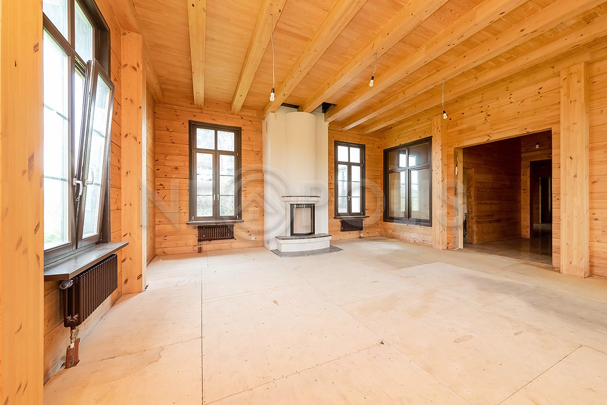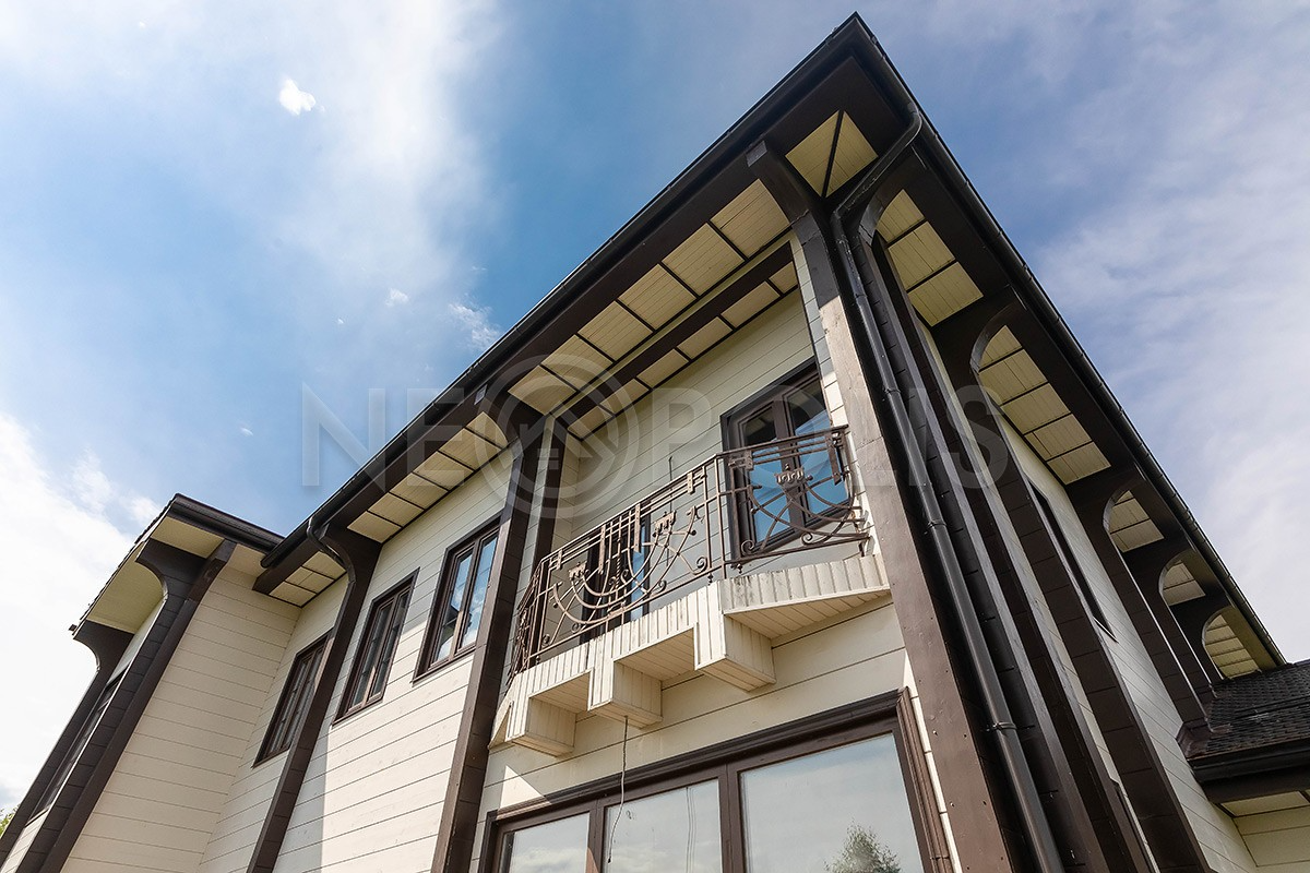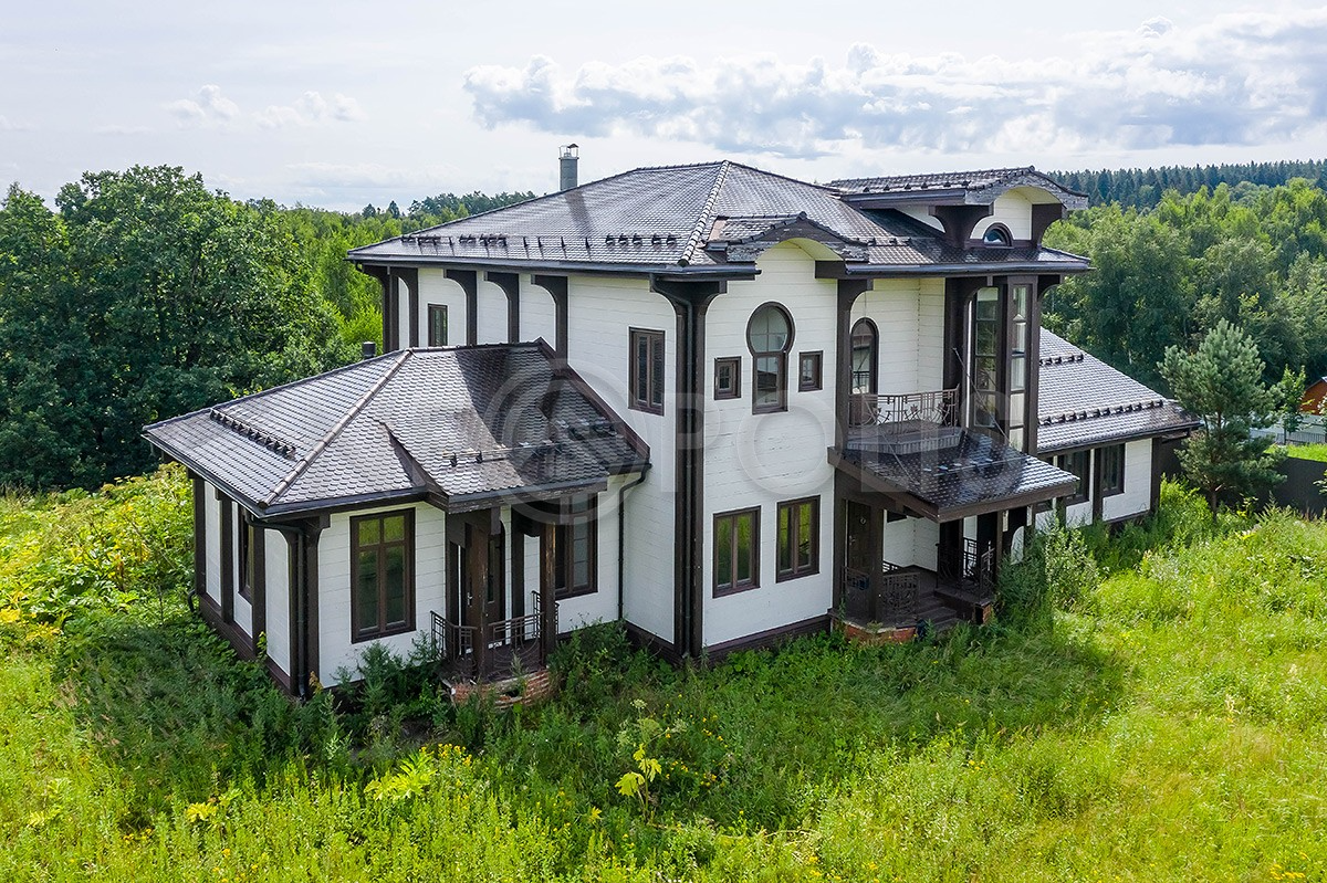 Дом из клееного бруса в поселке бизнес-класса подойдет для ценителей экологически чистых материалов.