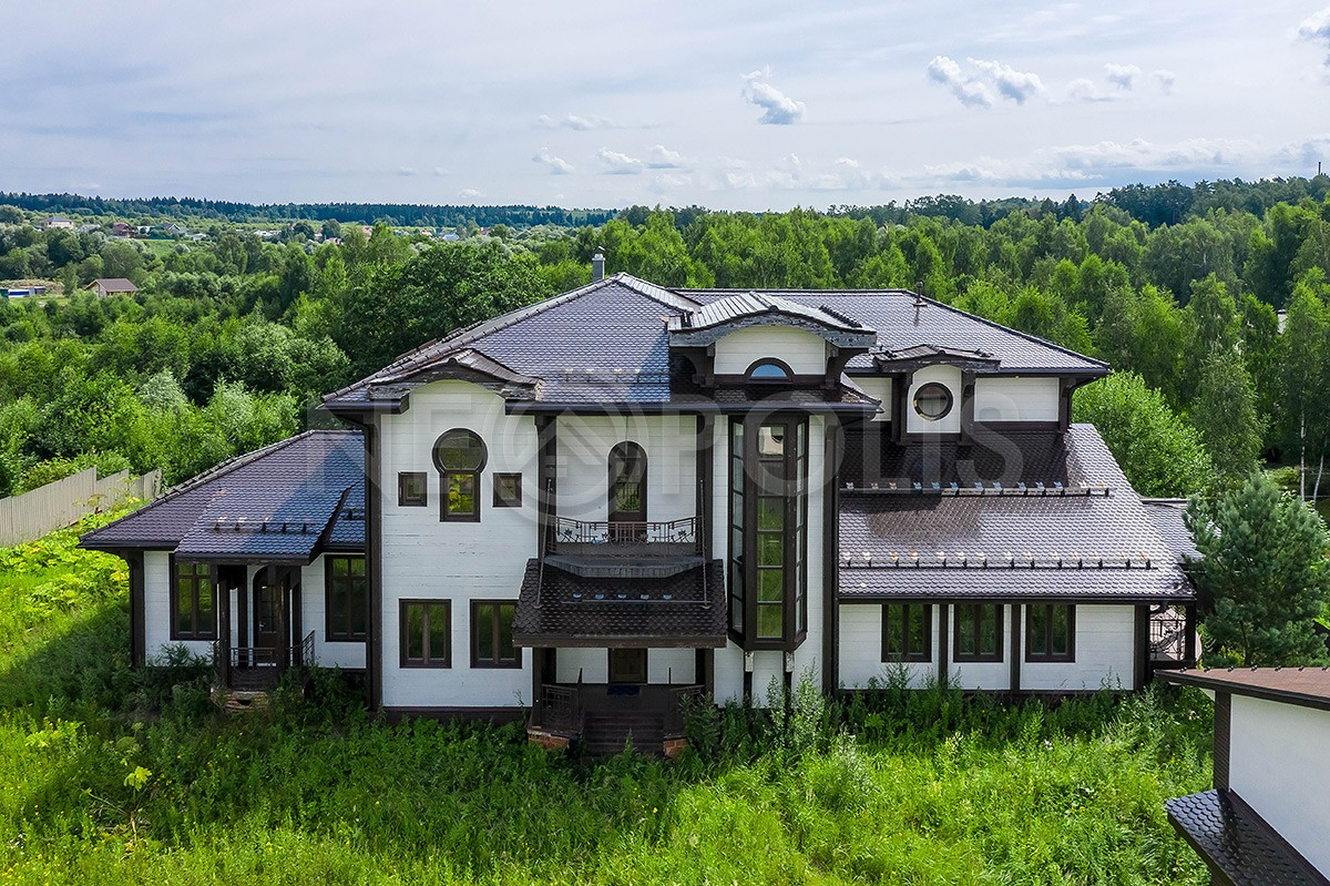 1 этаж: холл, прихожая, гостиная, кухня-столовая, гостевая спальня, бильярдный зал, зона бассейна, сауна, летняя открытая терраса, балкон, веранда, два санузла, бойлерная.